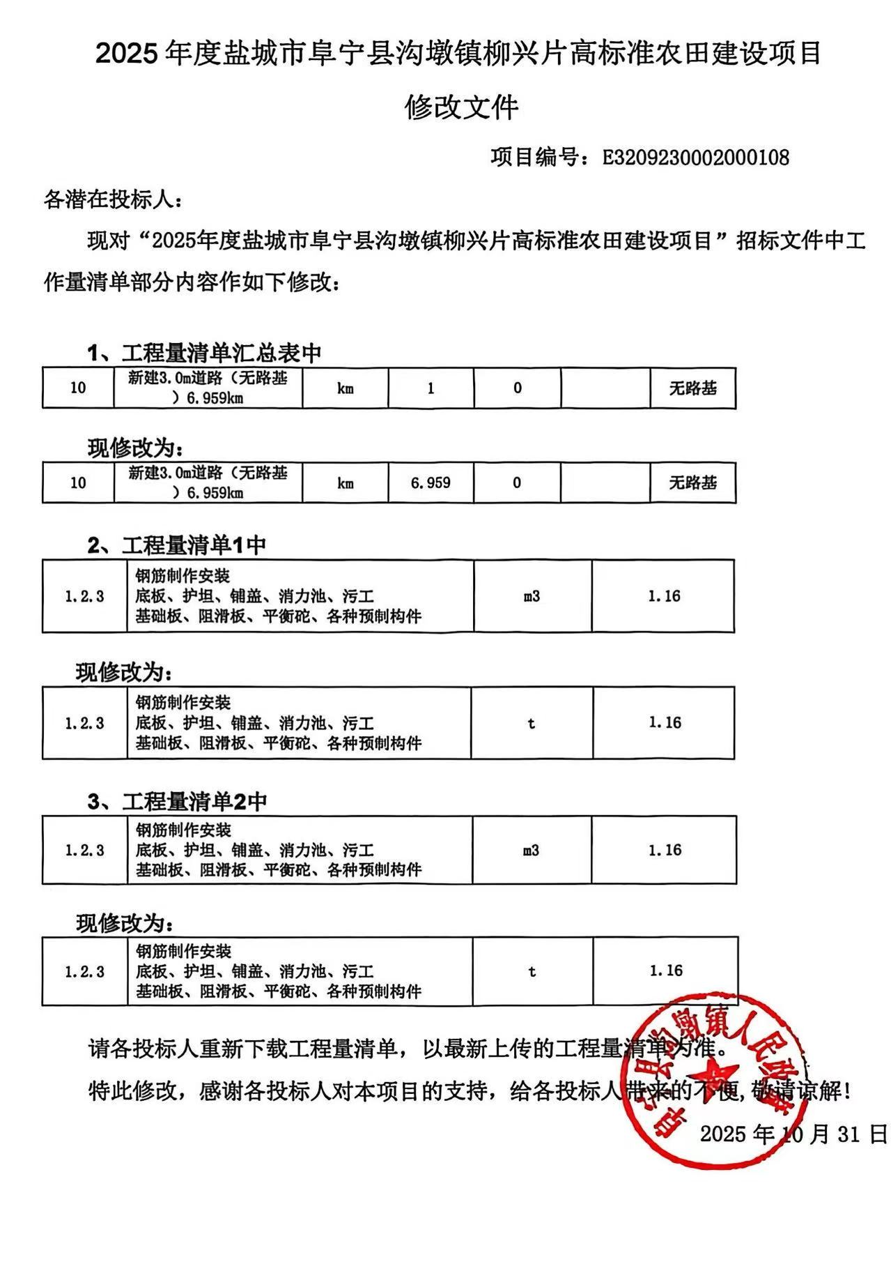 2025年度盐城市阜宁县沟墩镇柳兴片高标准农田建设项目修改文件