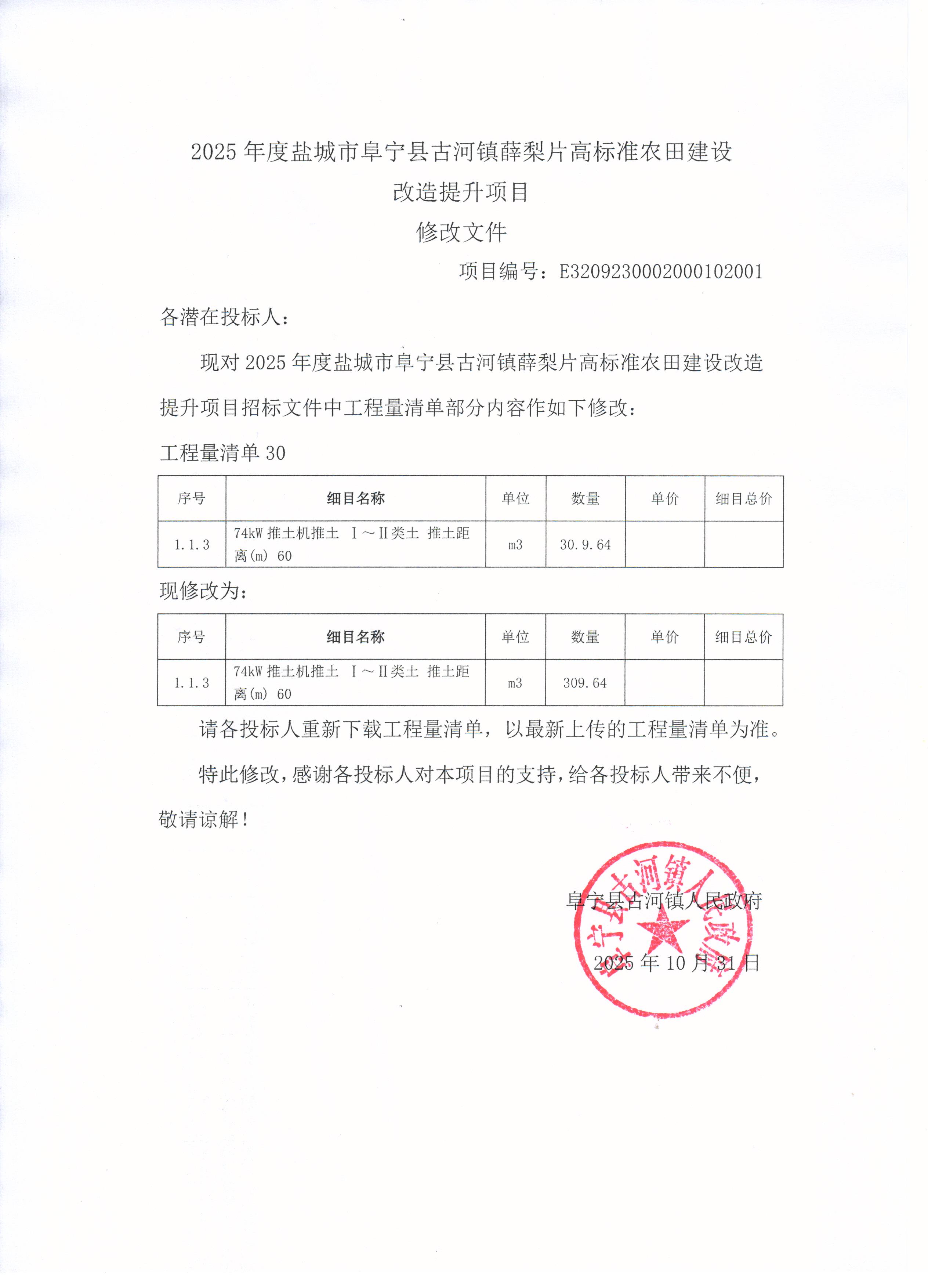 2025年度盐城市阜宁县古河镇薛梨片高标准农田建设改造提升项目