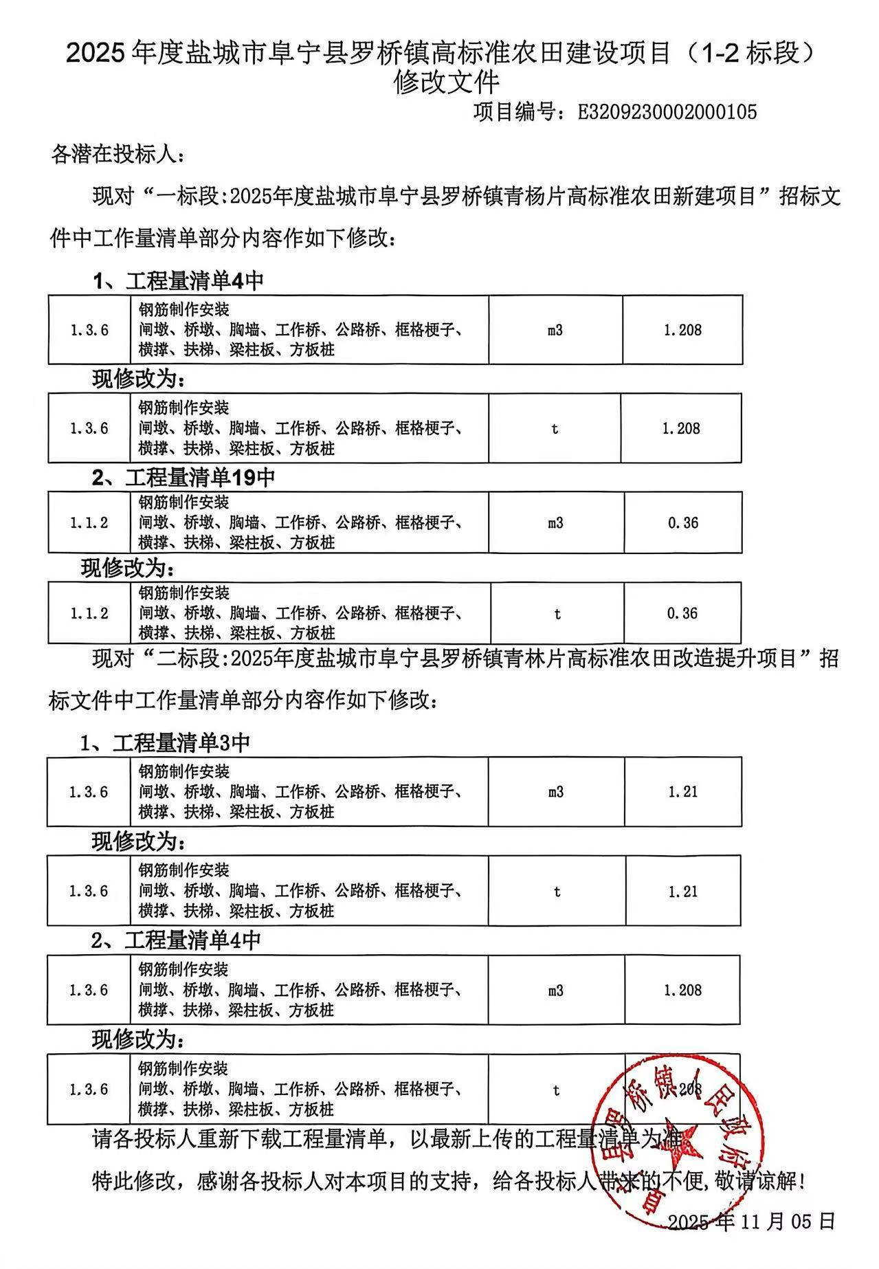 2025年度盐城市阜宁县罗桥镇高标准农田建设项目(1-2标段)