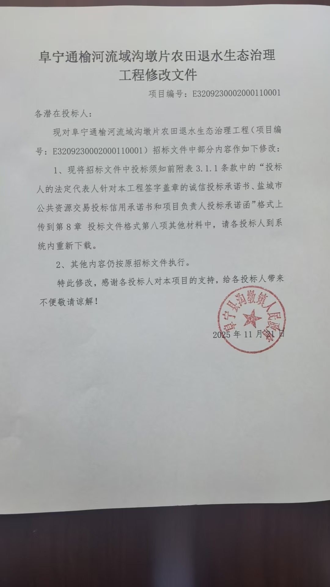 阜宁县通榆河流域沟墩片农田退水生态治理工程