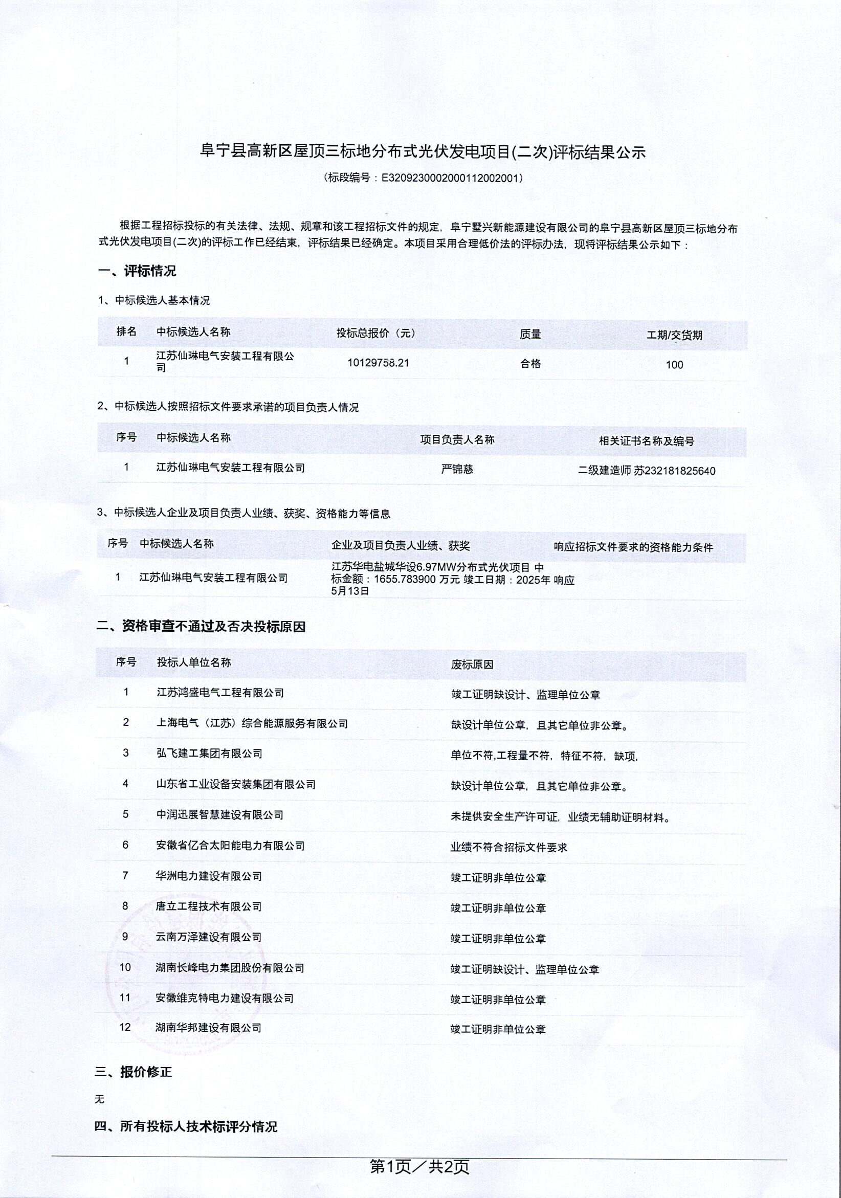 阜宁县高新区屋顶三标地分布式光伏发电项目(二次)