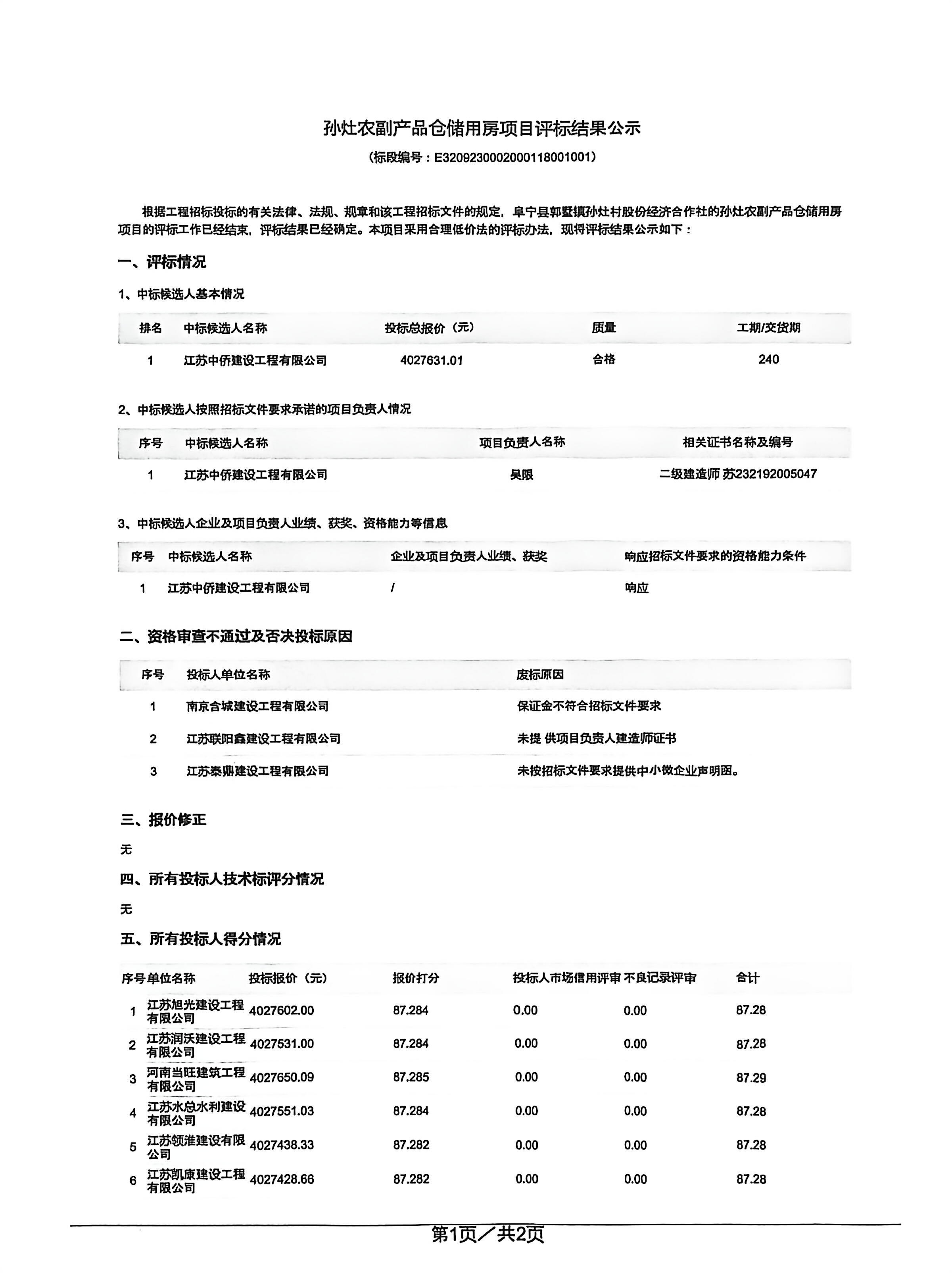 孙灶农副产品仓储用房项目