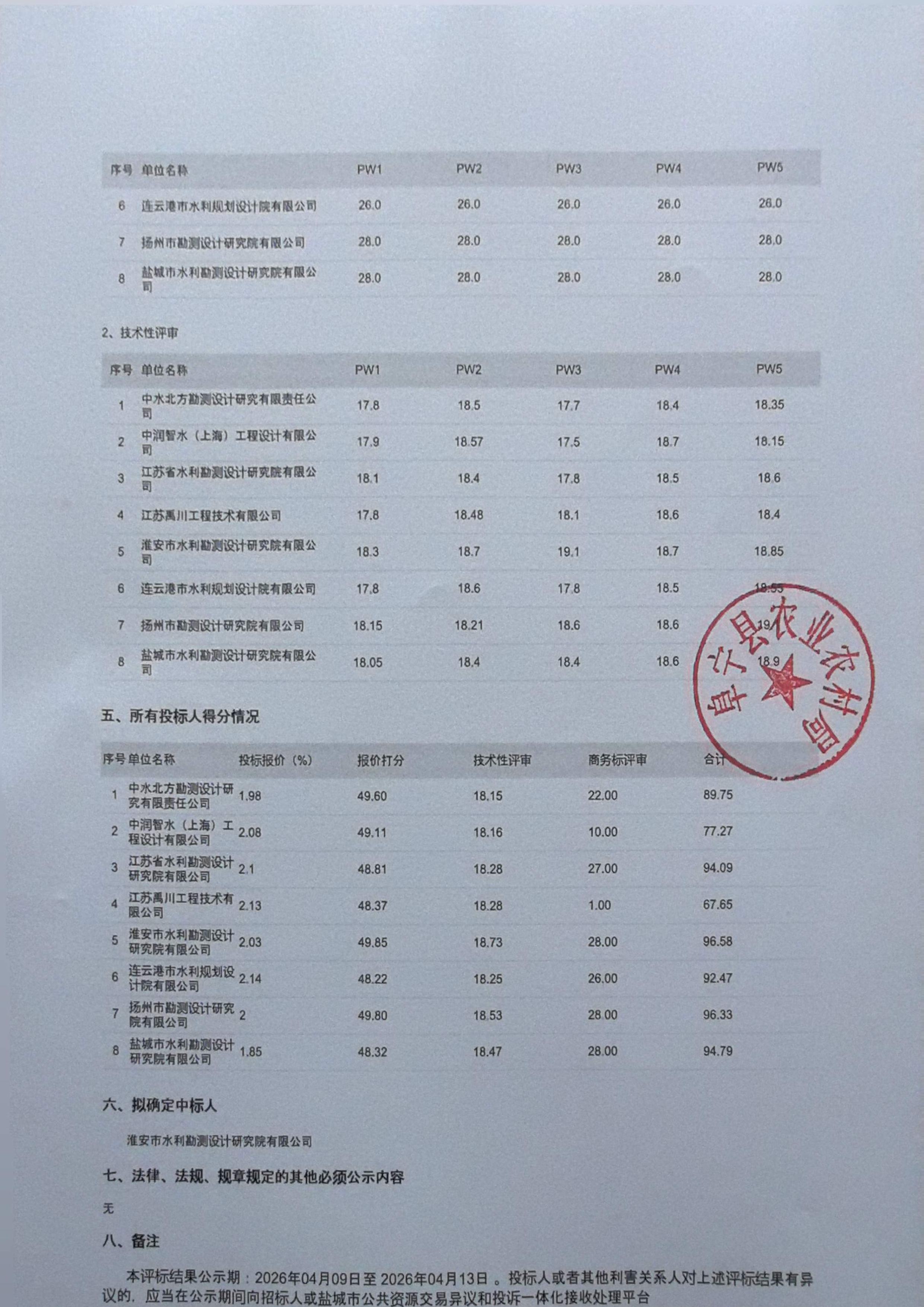 中标候选人公示