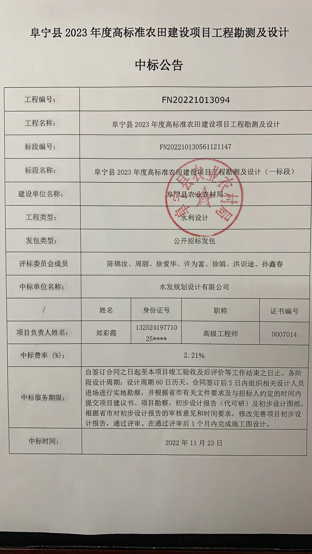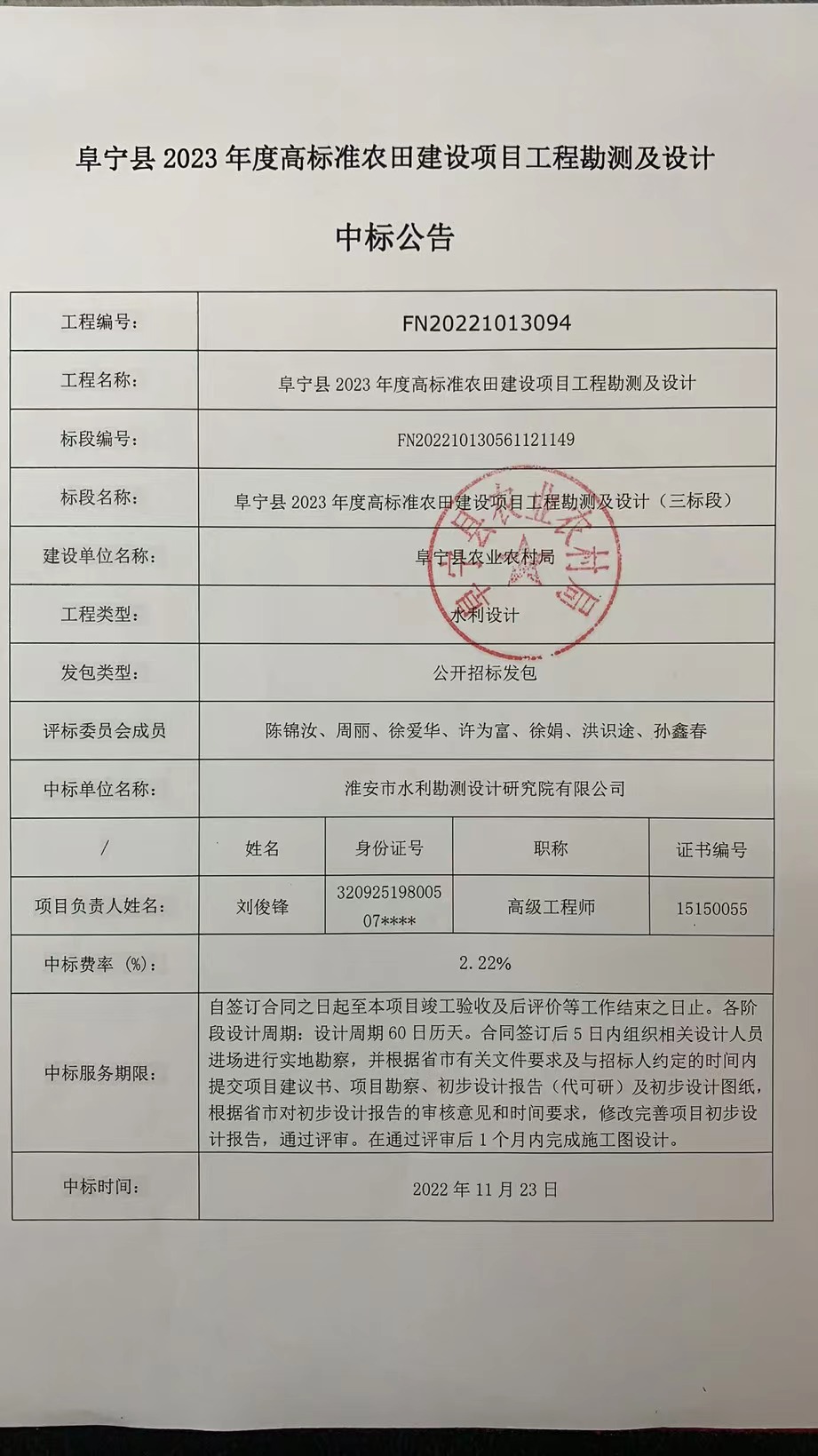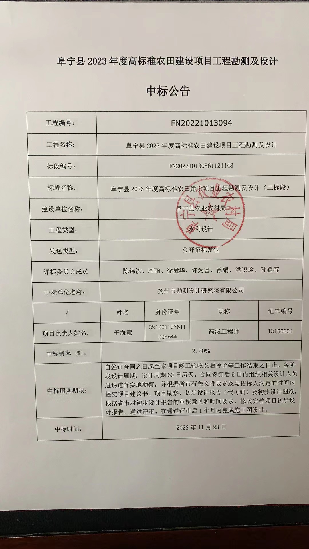 阜宁县2023年度高标准农田建设项目工程勘测及设计