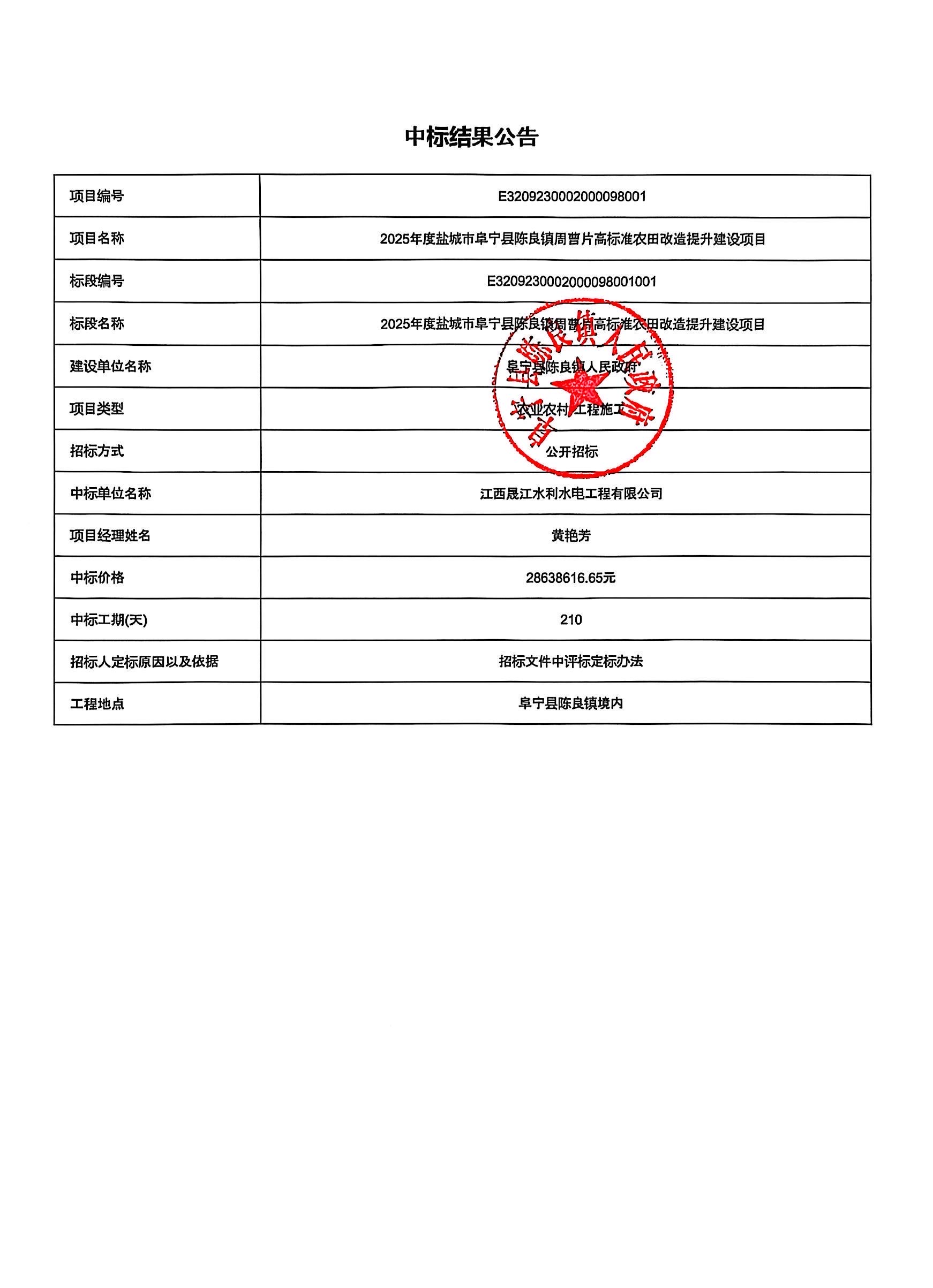 2025年度盐城市阜宁县陈良镇周曹片高标准农田改造提升建设项目