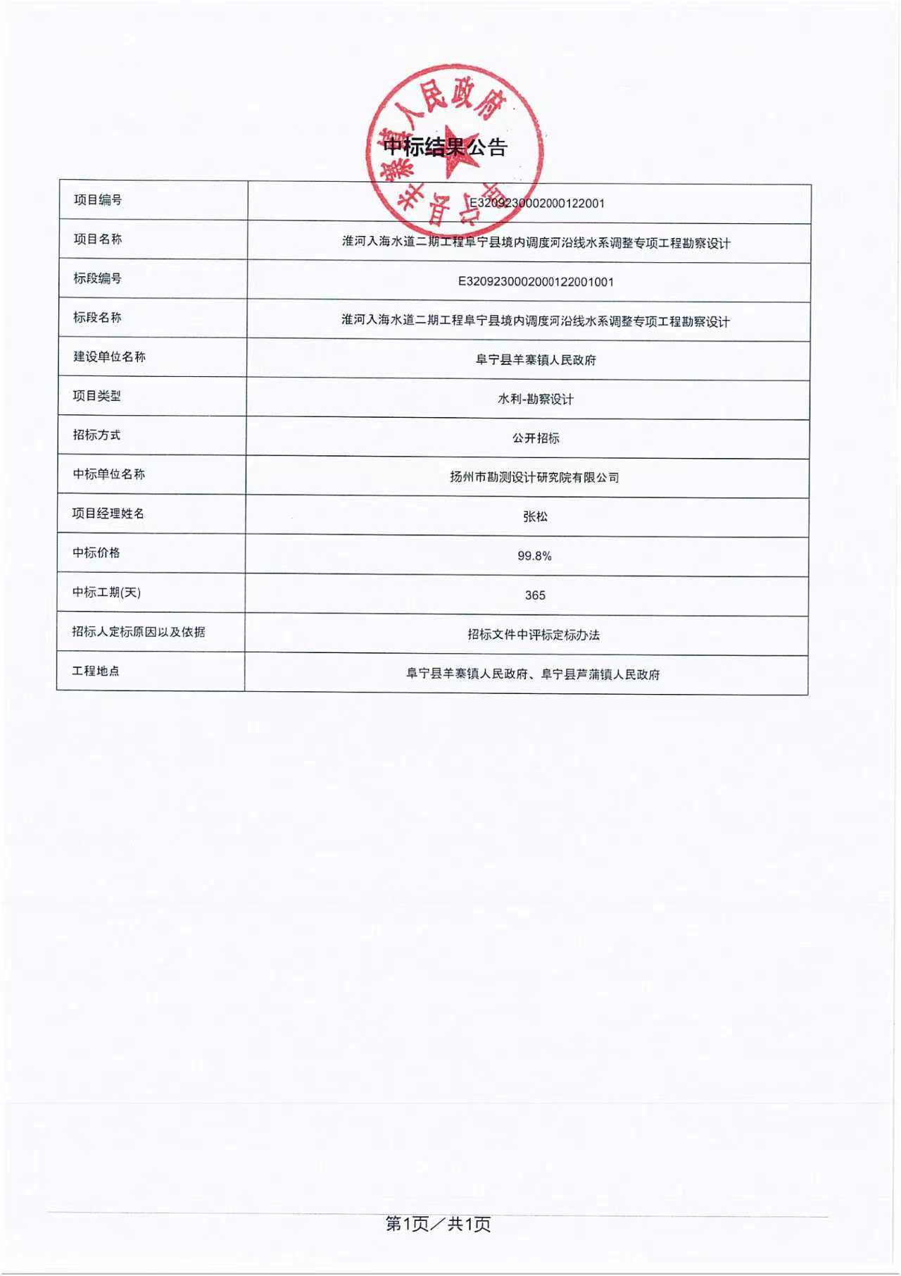 中标结果公示