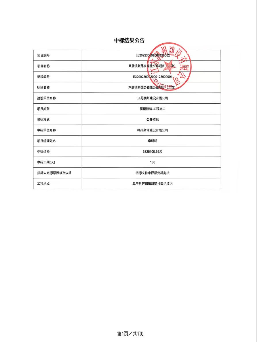 芦蒲镇新荡公益性公墓项目(二次)中标结果公告