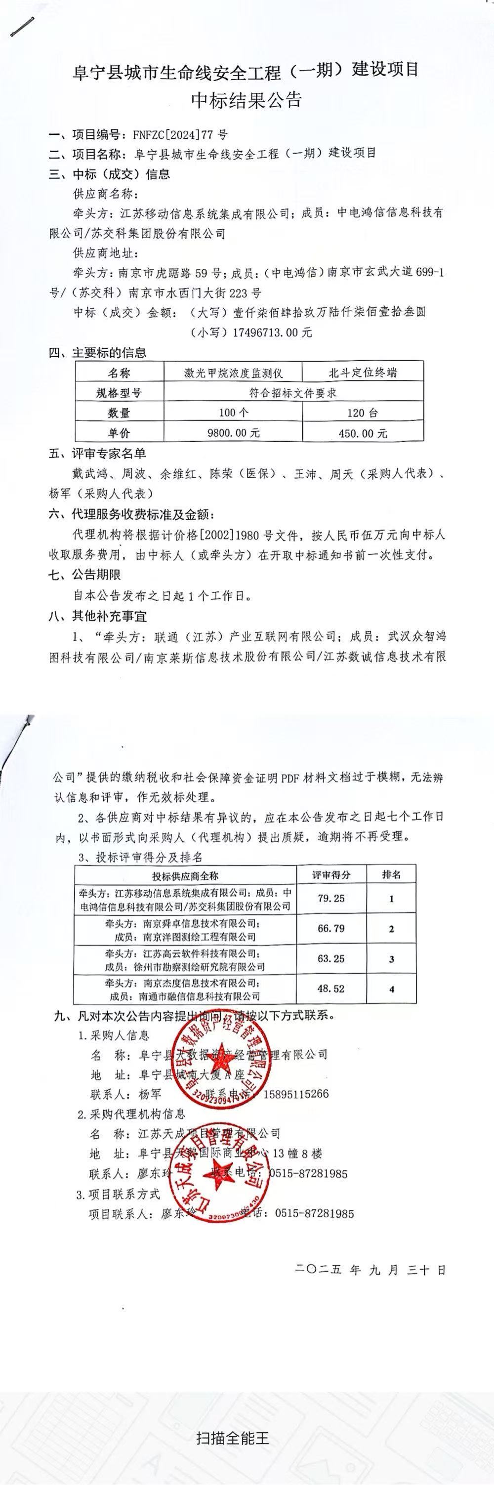 阜宁县城市生命线安全工程(一期)建设项目中标结果公告