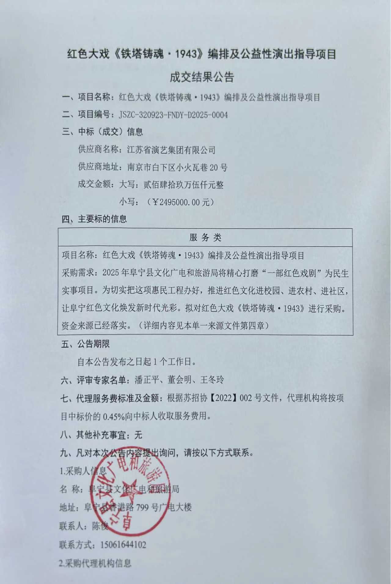 红色大戏《铁塔铸魂·1943》编排及公益性演出指导项目成交结果公告
