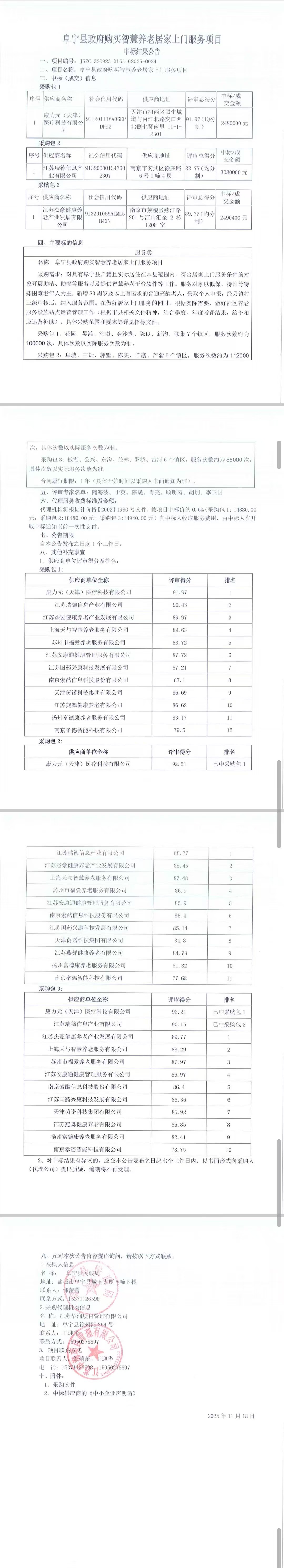 阜宁县政府购买智慧养老居家上门服务项目中标结果公告