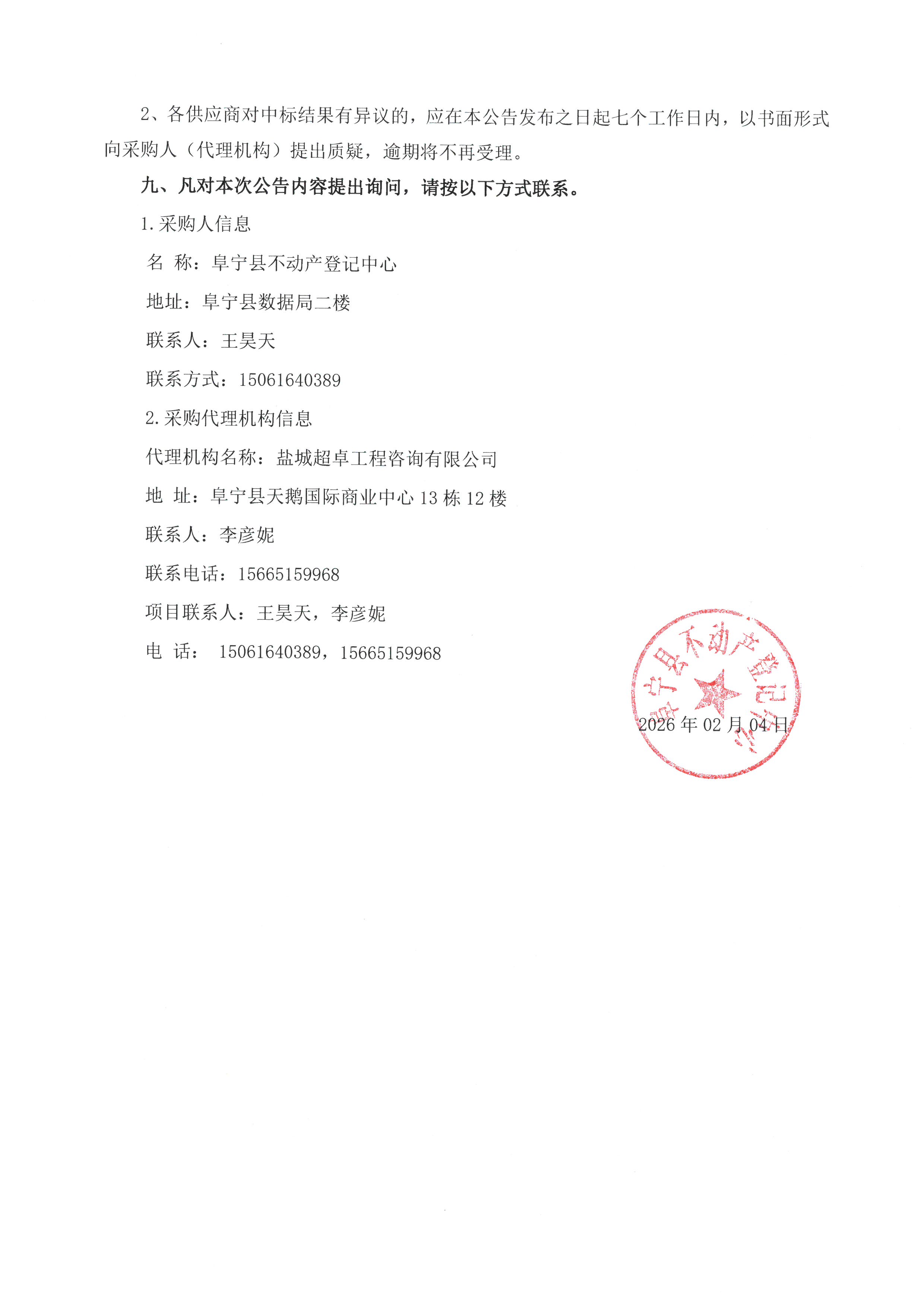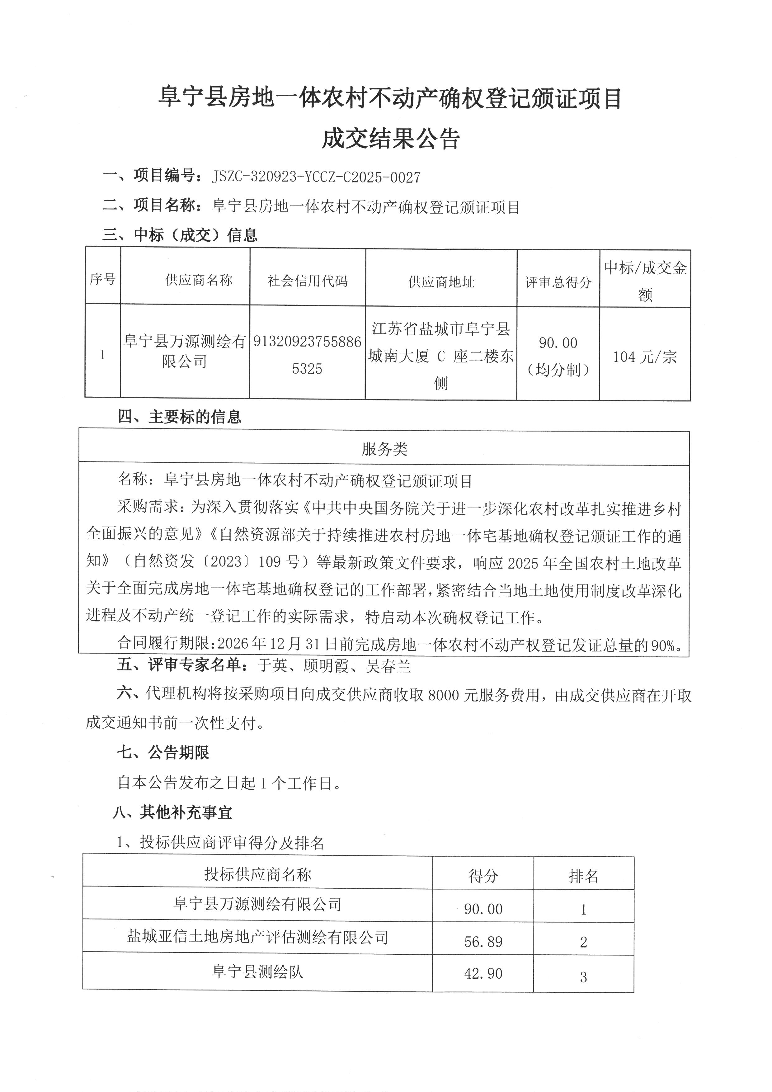 阜宁县房地一体农村不动产确权登记颁证项目成交结果公告