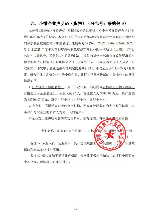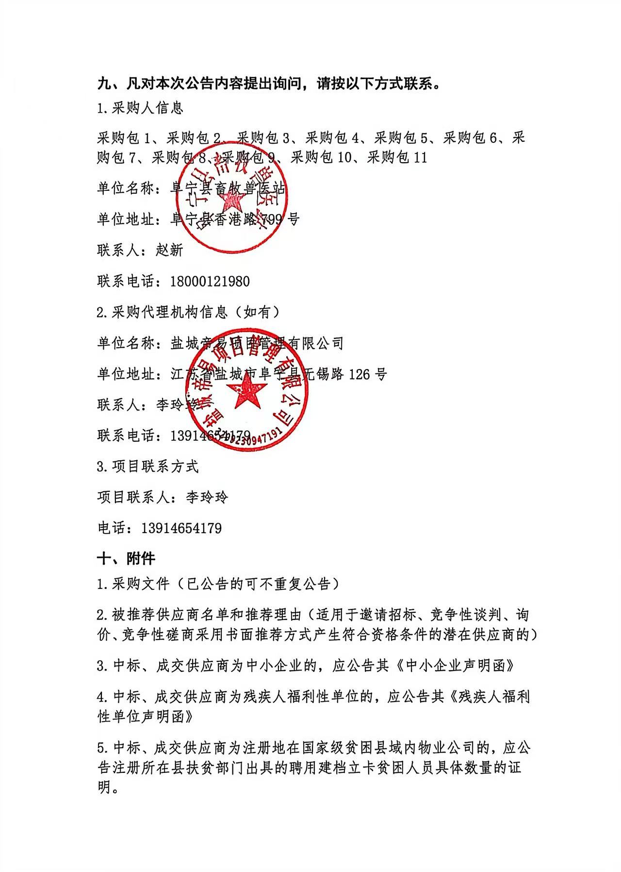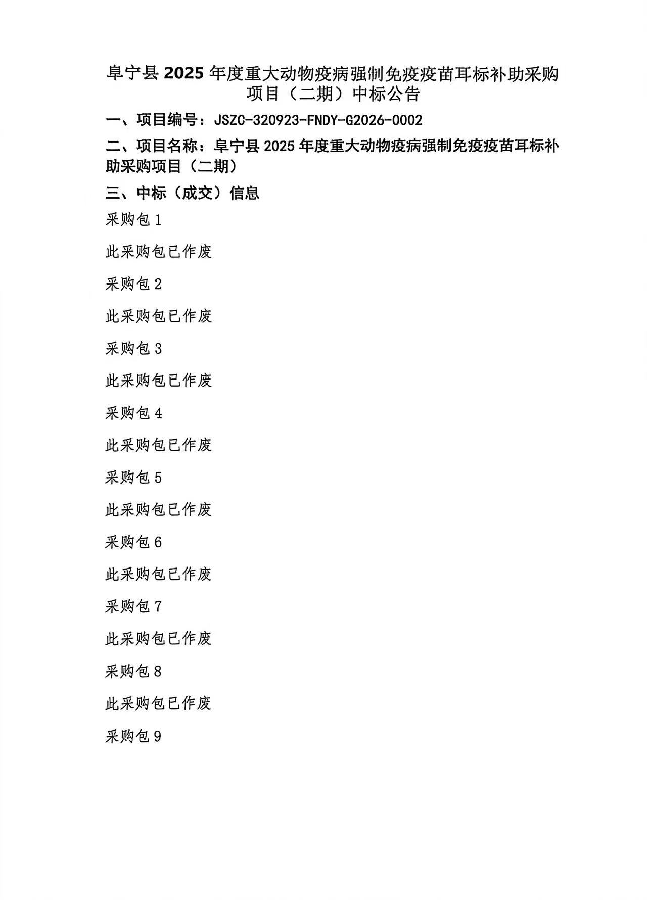 阜宁县2025年度重大动物疫病强制免疫疫苗耳标补助采购项目(二期)中标公告