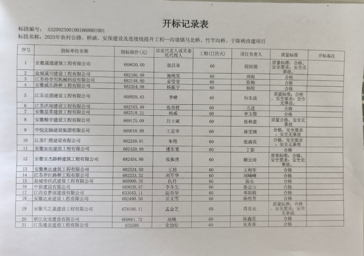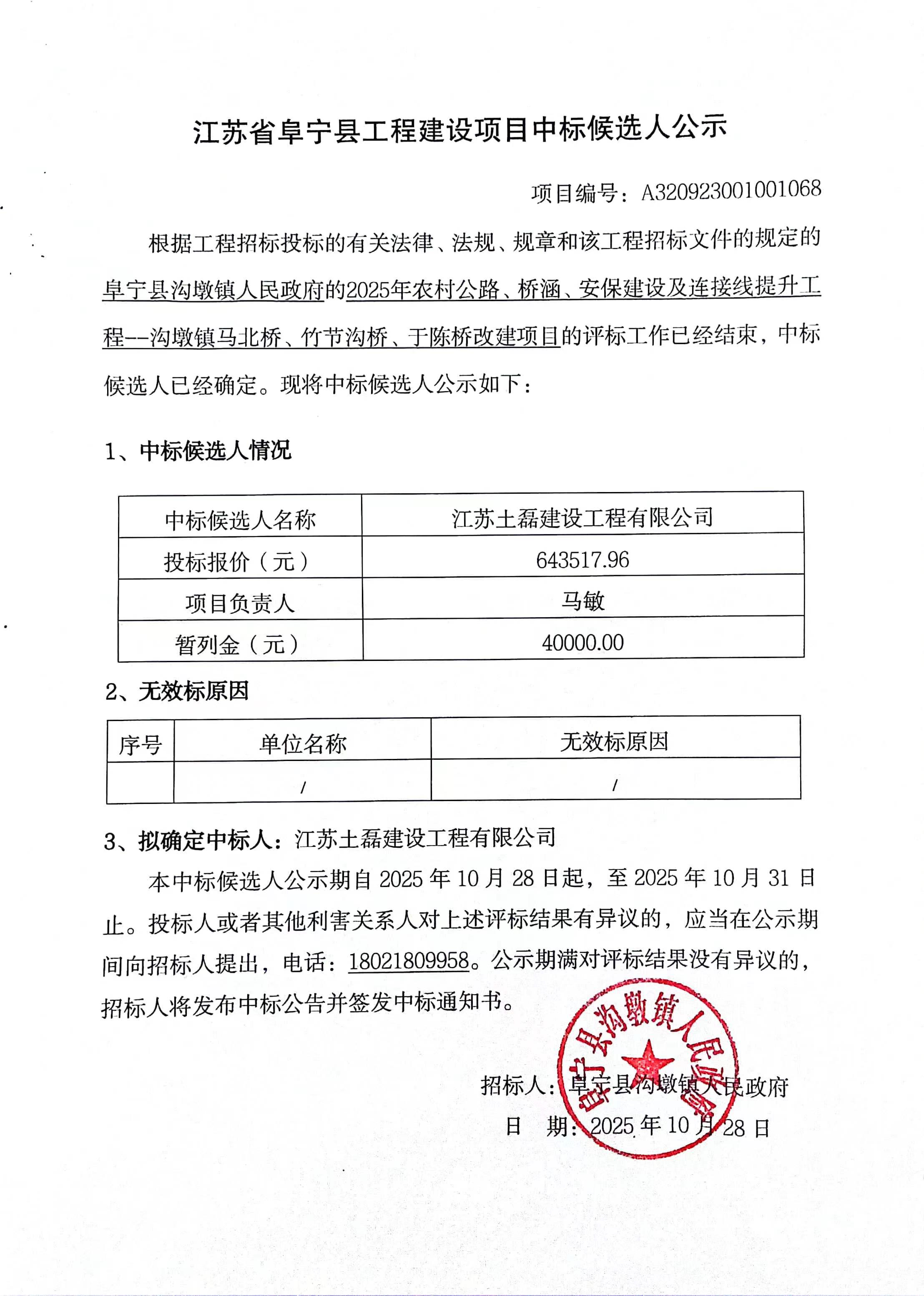 2025年农村公路、桥涵、安保建设及连接线提升工程--沟墩镇马北桥、竹节沟桥、于陈桥改建项目中标候选人公示