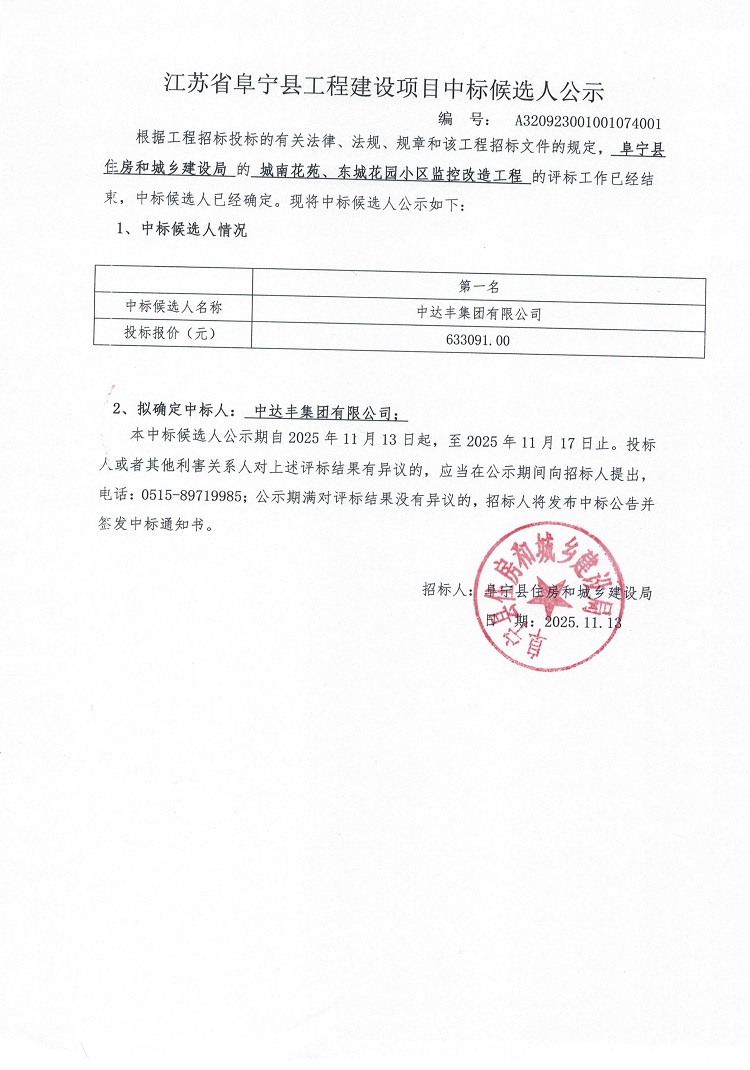 城南花苑、东城花园小区监控改造工程中标候选人公示