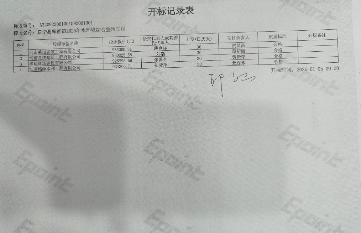 阜宁县羊寨镇2025年水环境综合整治工程中标候选人公示