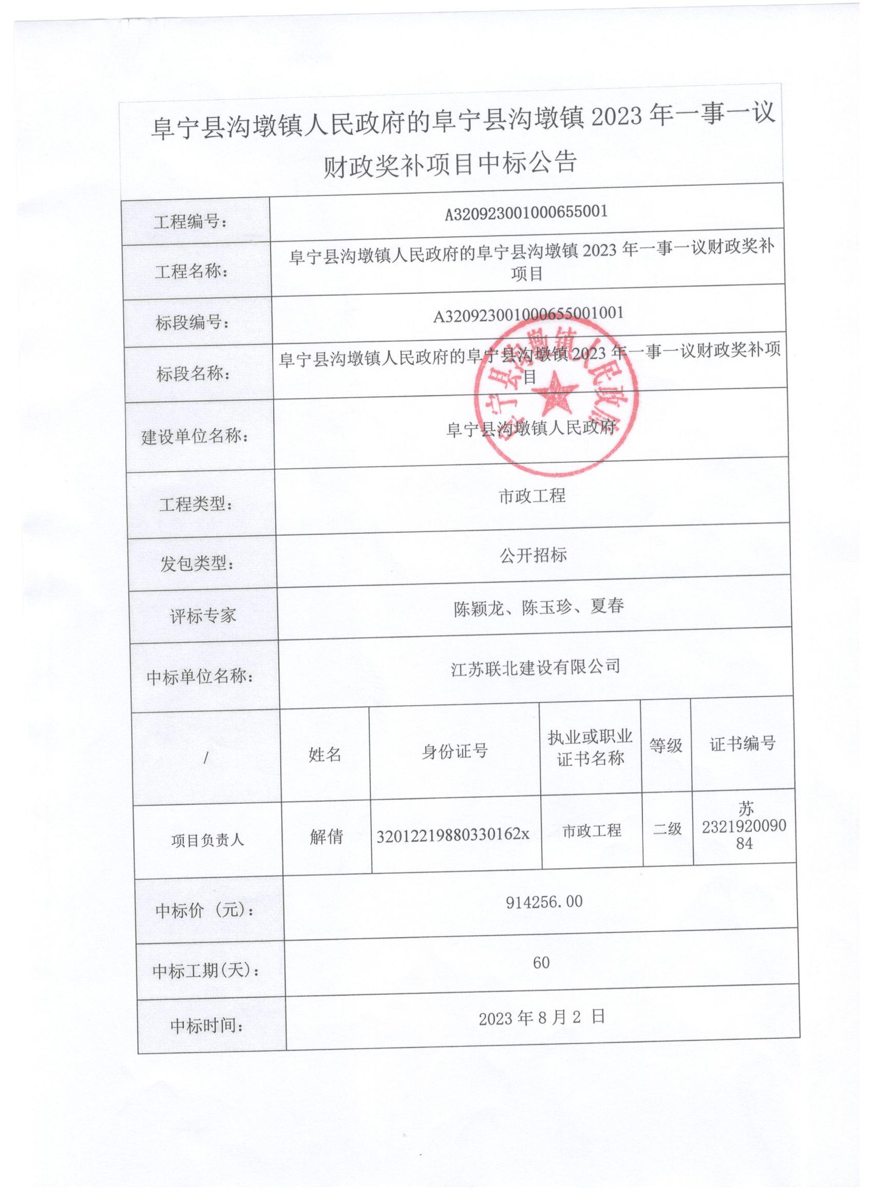阜宁县沟墩镇2023年一事一议财政奖补项目