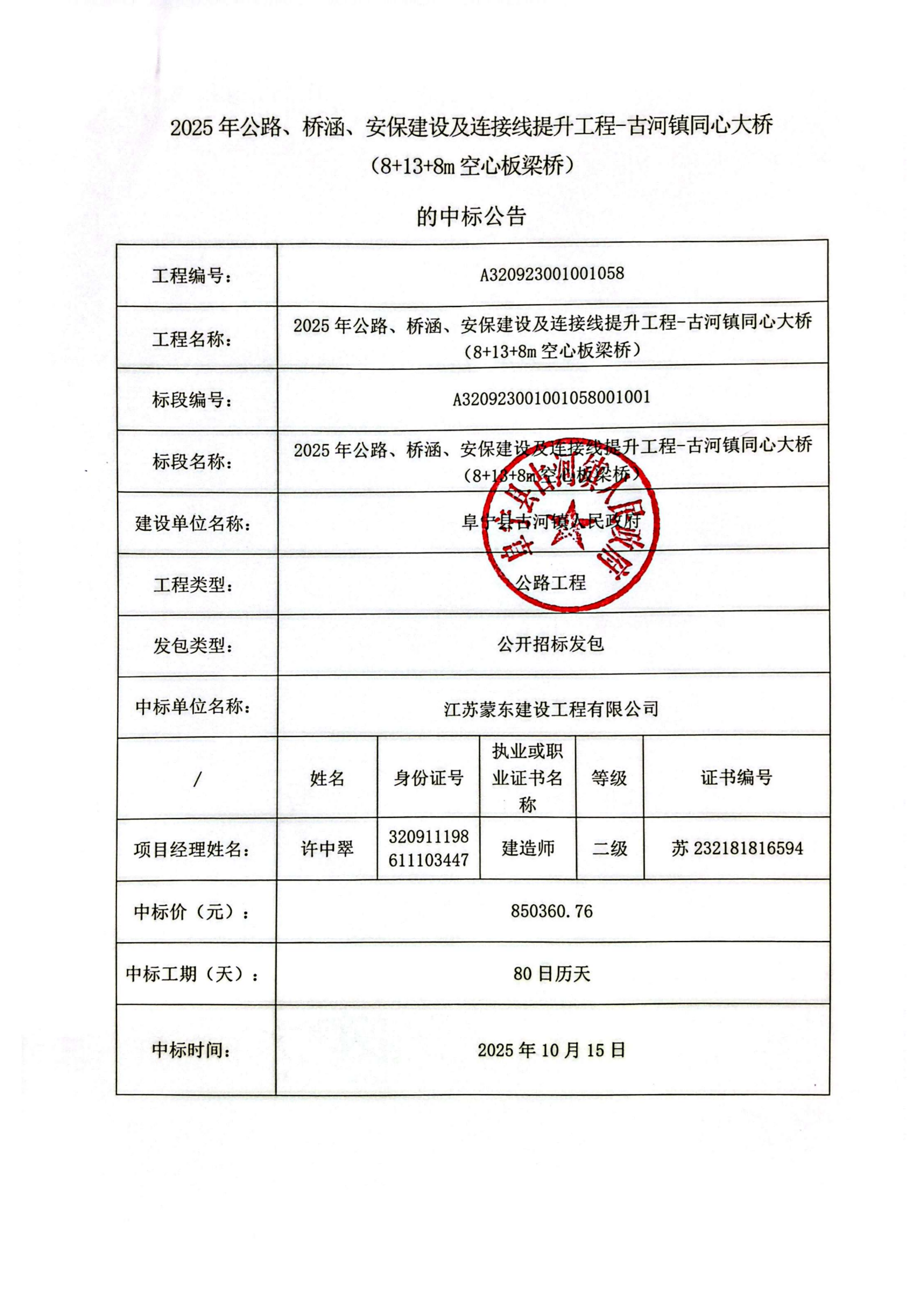 2025年公路、桥涵、安保建设及连接线提升工程-古河镇同心大桥(8+13+8m空心板梁桥)