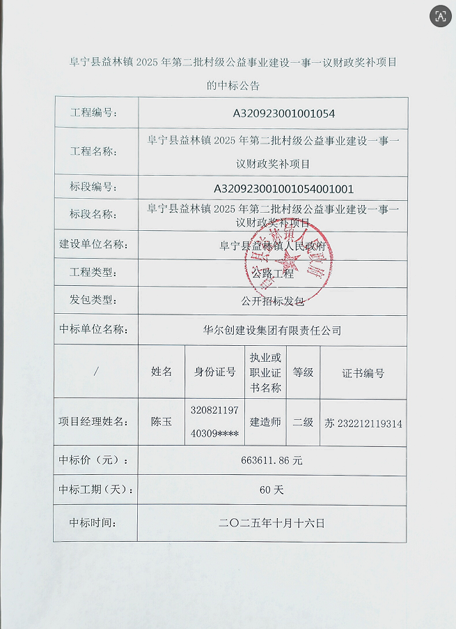 阜宁县益林镇2025年第二批村级公益事业建设一事一议财政奖补项目
