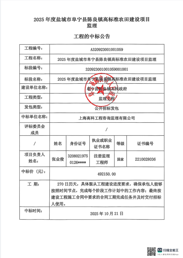 中标结果公示