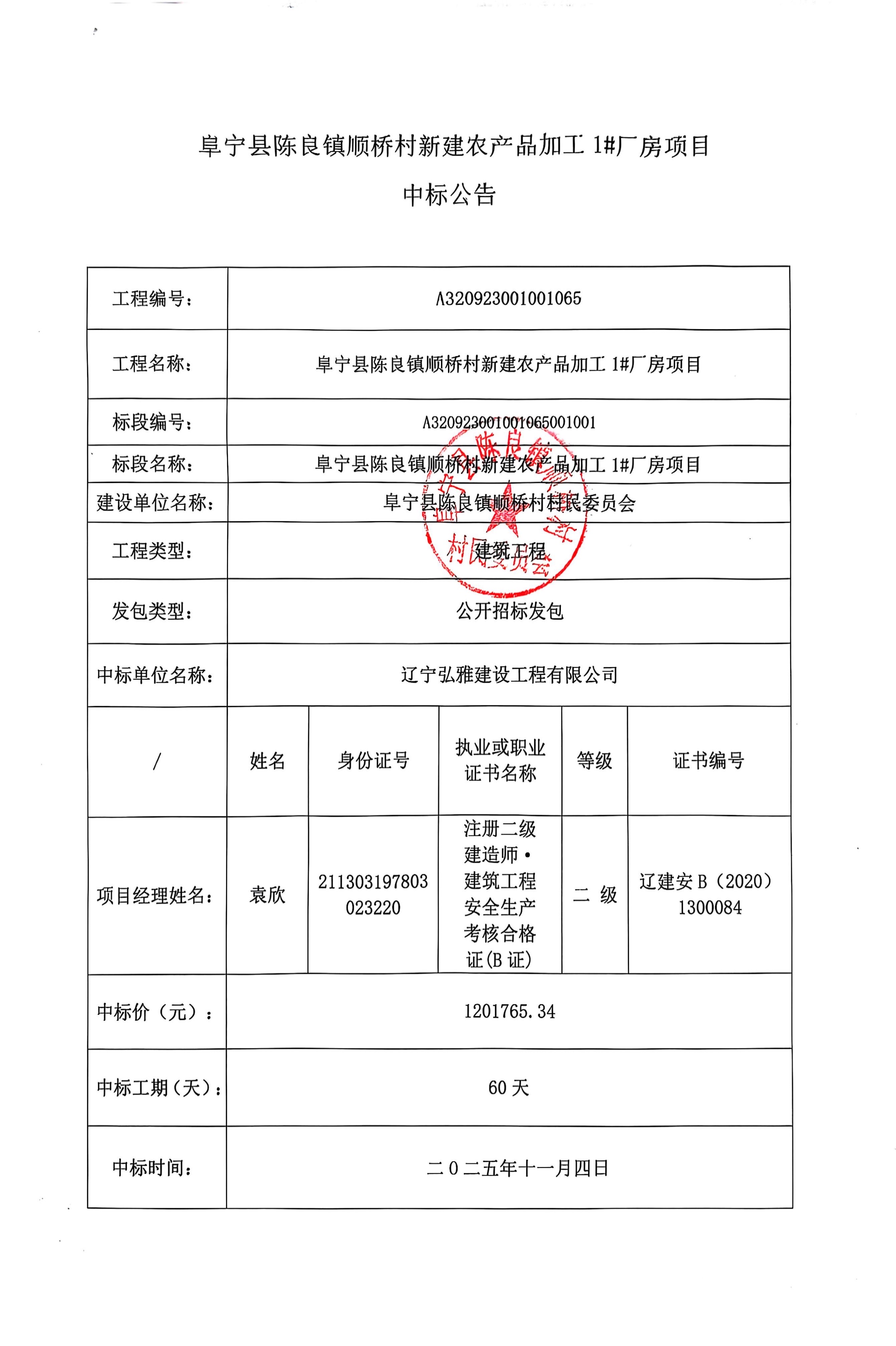 阜宁县陈良镇顺桥村新建农产品加工1#厂房项目