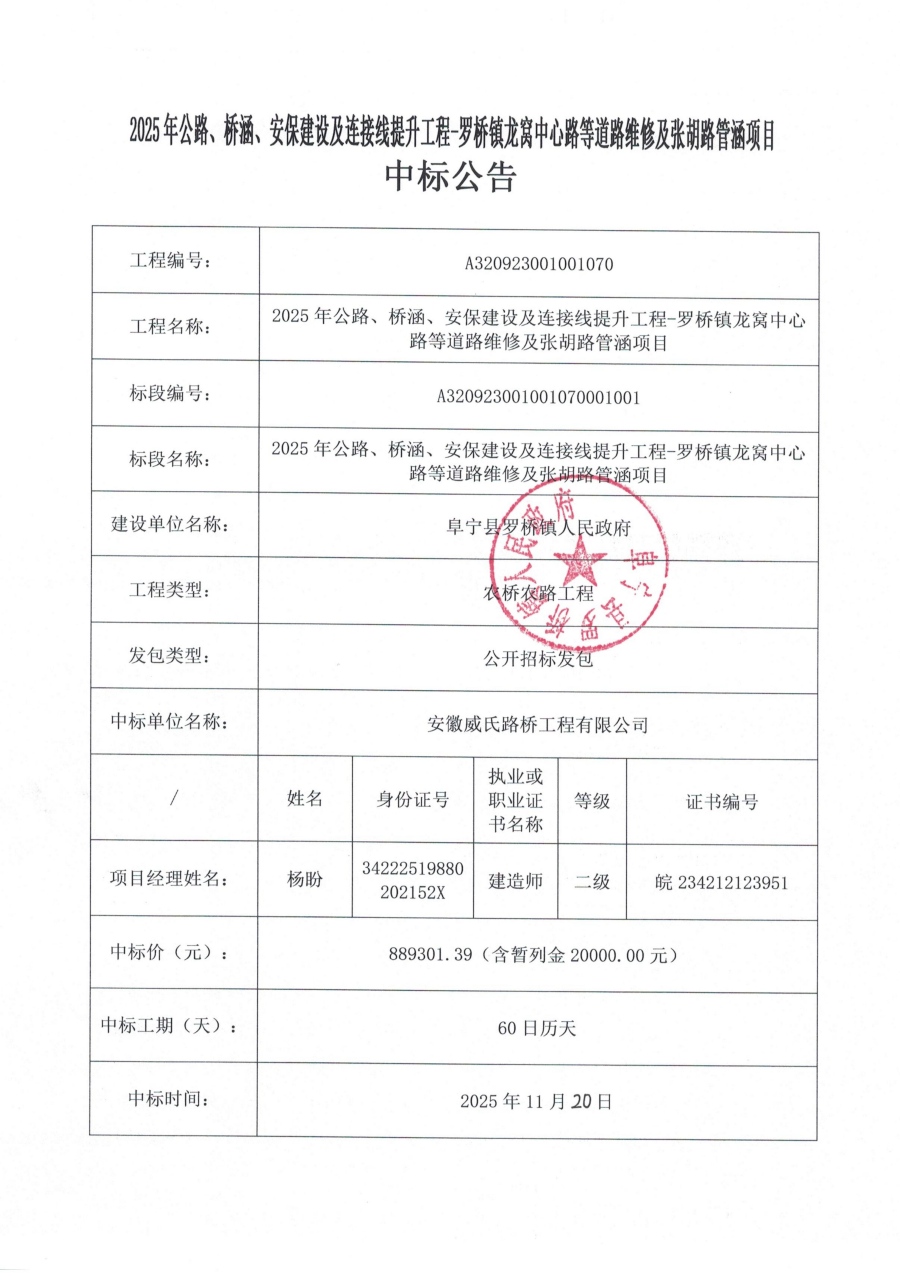 2025年公路、桥涵、安保建设及连接线提升工程-罗桥镇龙窝中心路等道路维修及张胡路管涵项目