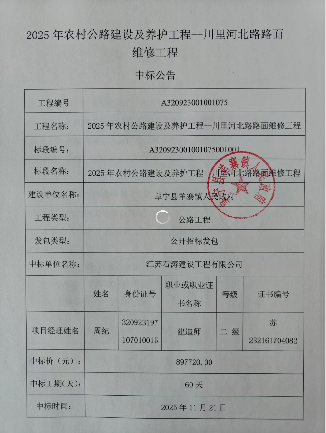 中标结果公示