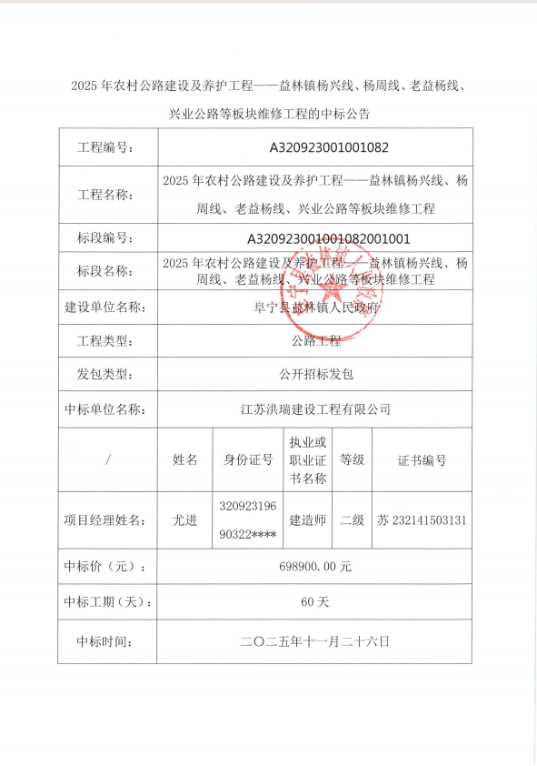 2025年农村公路建设及养护工程——益林镇杨兴线、杨周线、老益杨线、兴业公路等板块维修工程