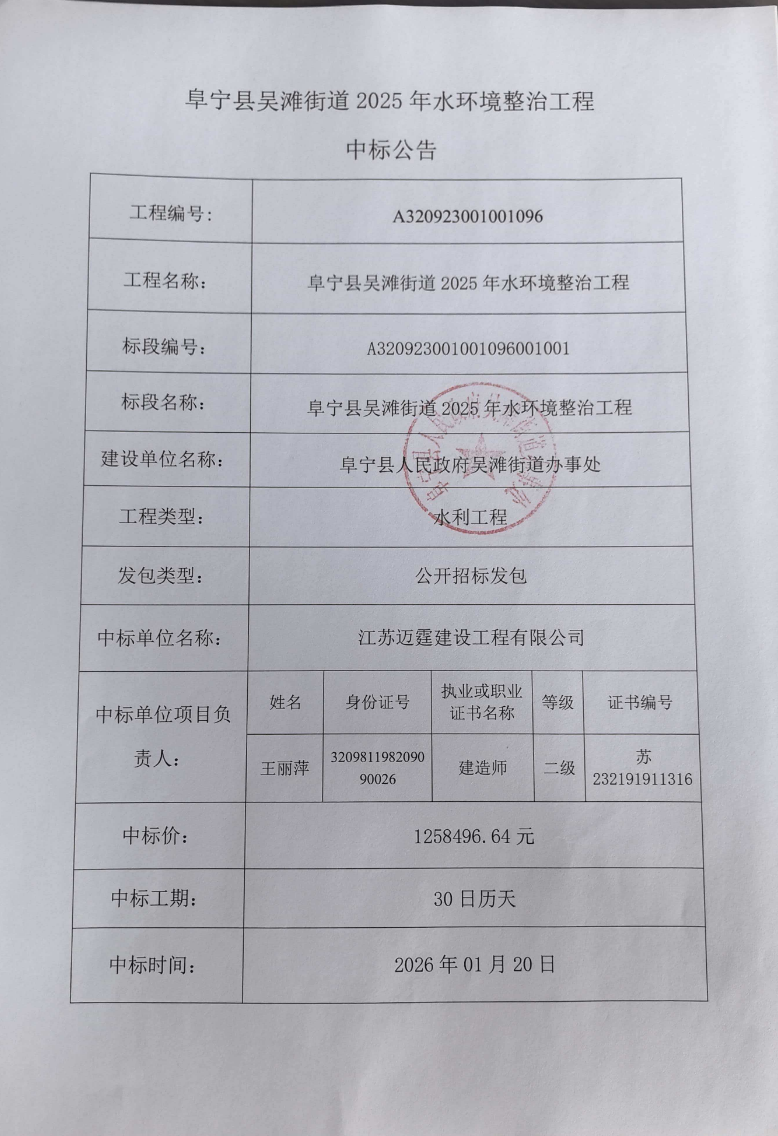 阜宁县吴滩街道2025年水环境整治工程
