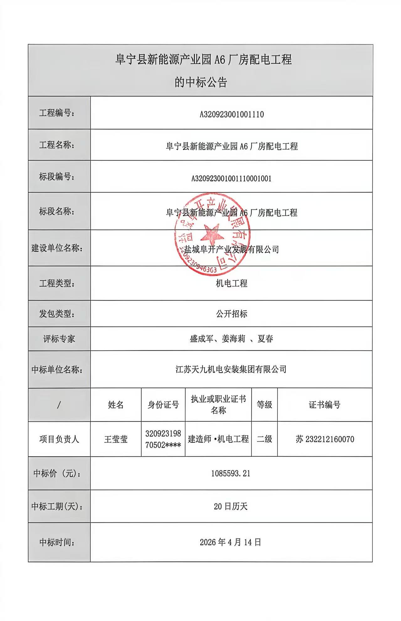 中标结果公示