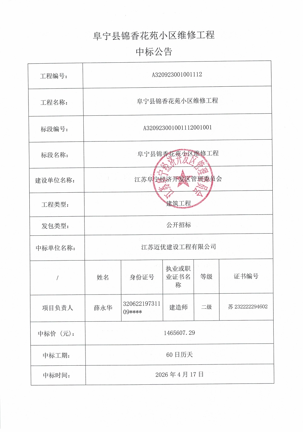 中标结果公示