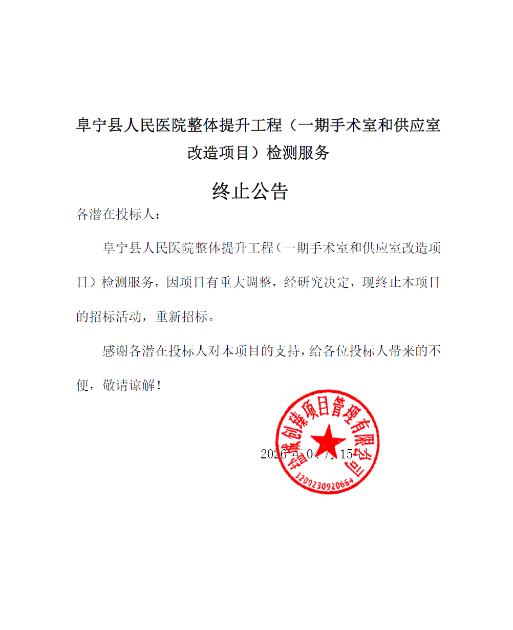 阜宁县人民医院整体提升工程(一期手术室和供应室改造项目)检测服务