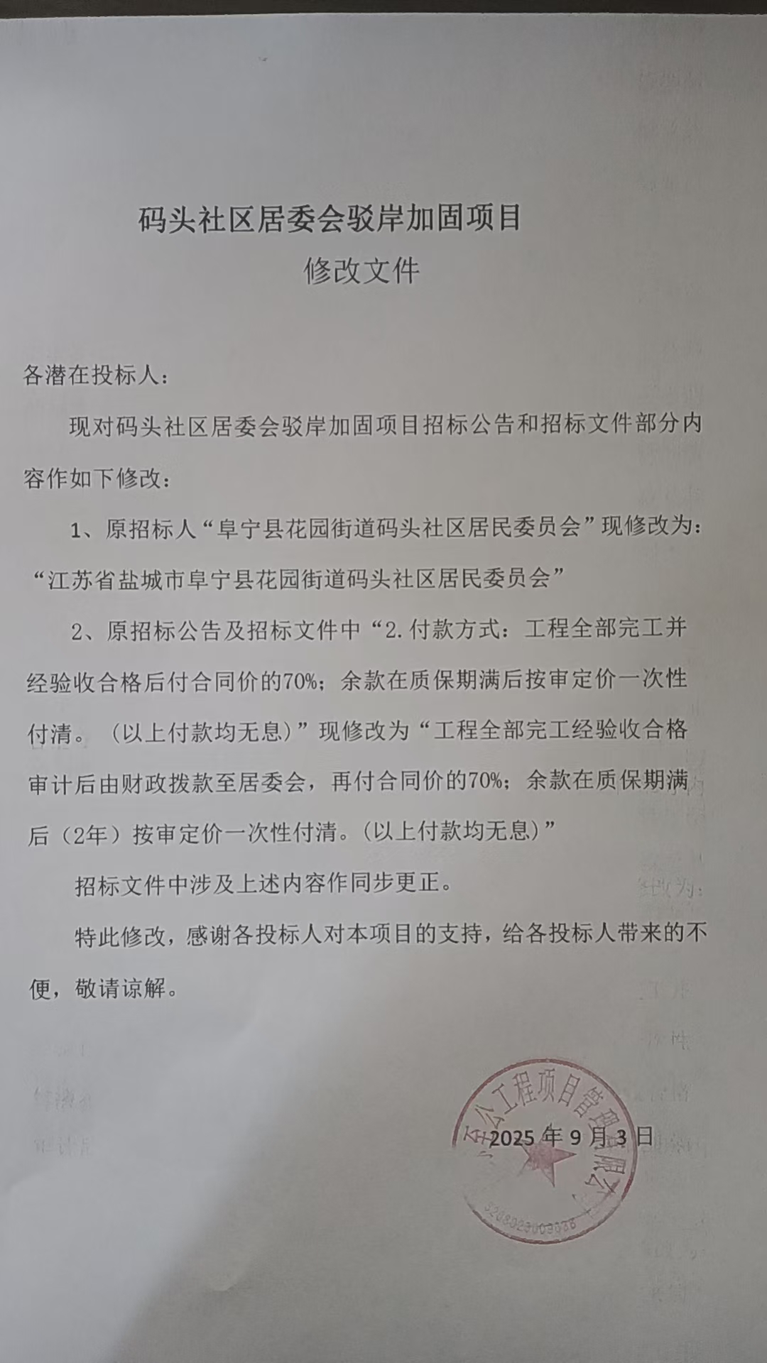 码头社区居委会驳岸加固项目修改文件