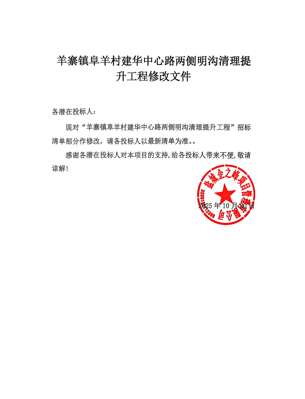 羊寨镇阜羊村建华中心路两侧明沟清理提升工程