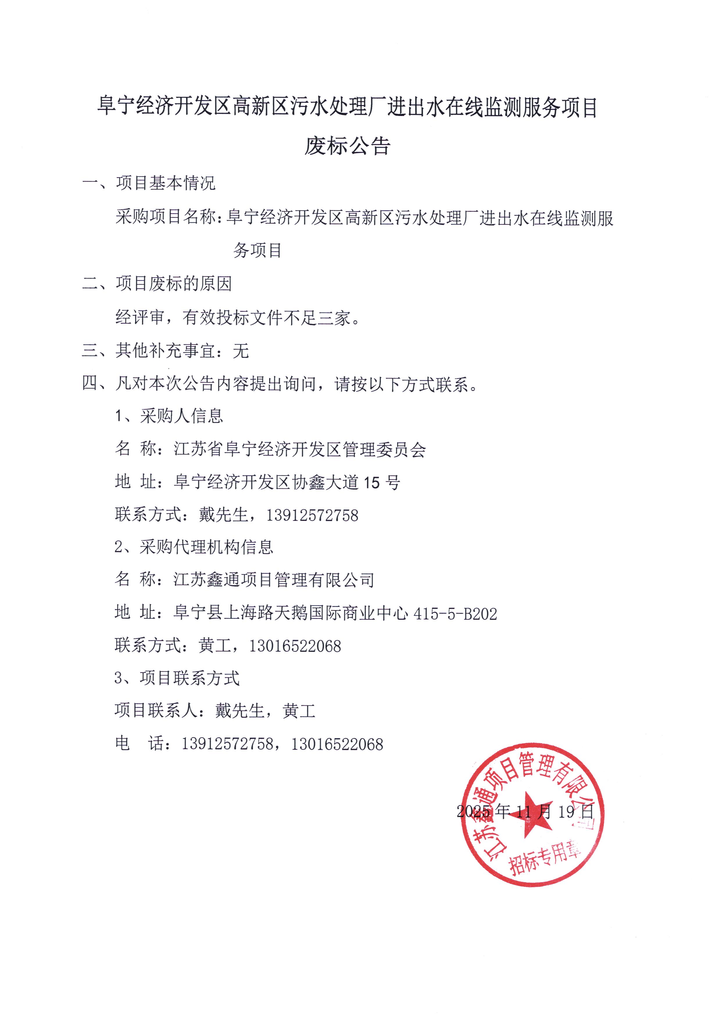 阜宁经济开发区高新区污水处理厂进出水在线监测服务项目