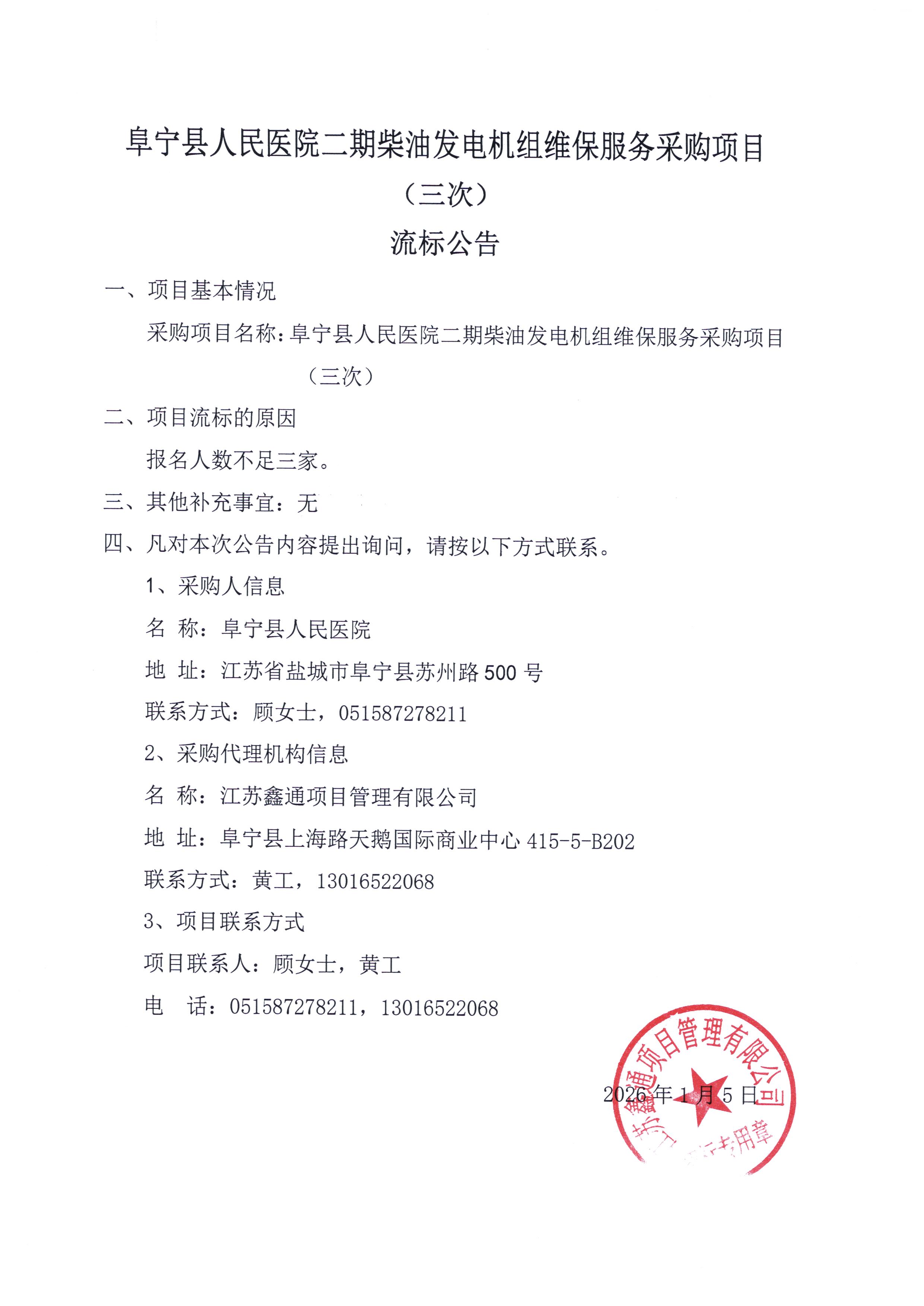 阜宁县人民医院二期柴油发电机组维保服务采购项目