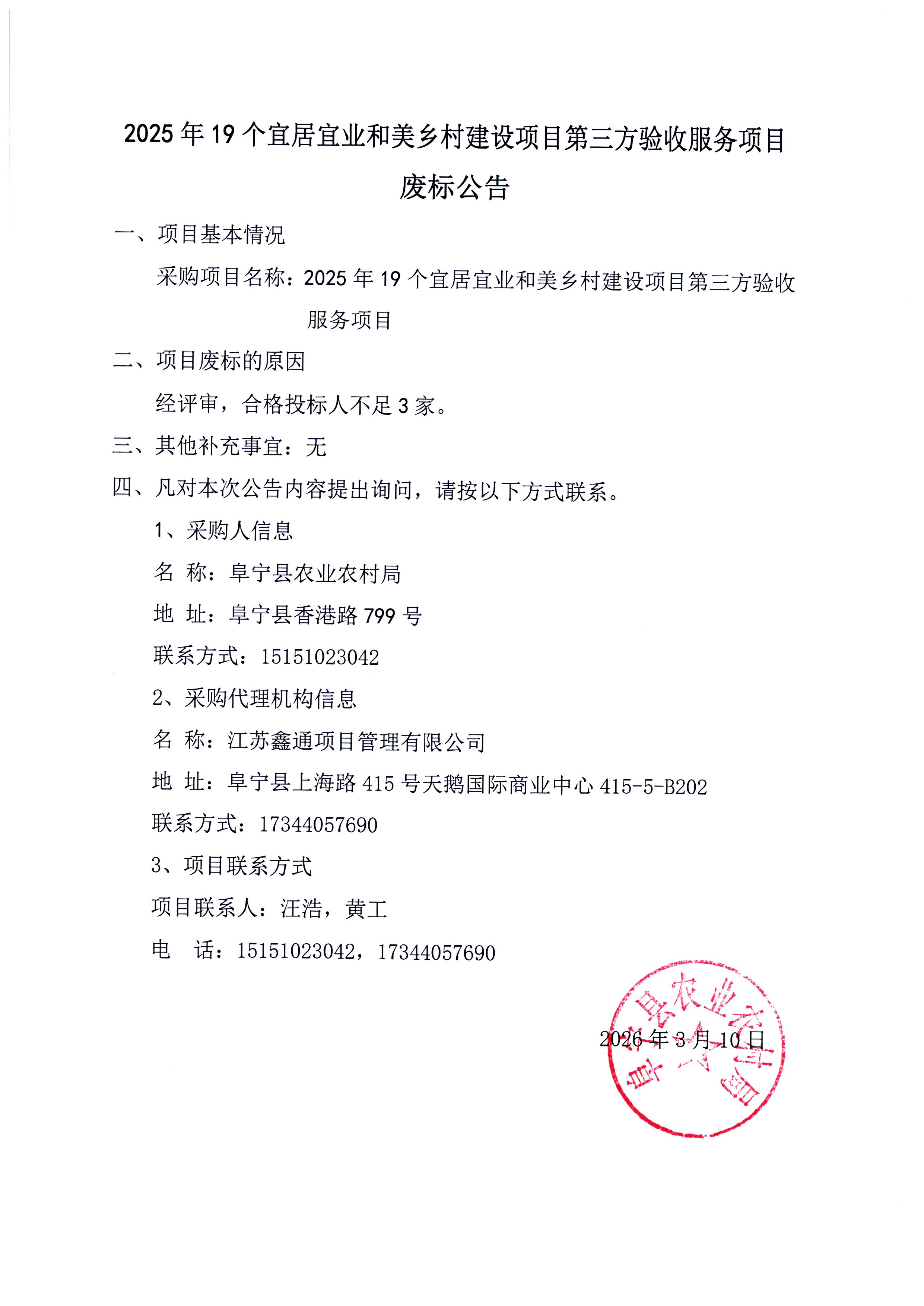 2025年19个宜居宜业和美乡村建设项目第三方验收服务项目废标公告