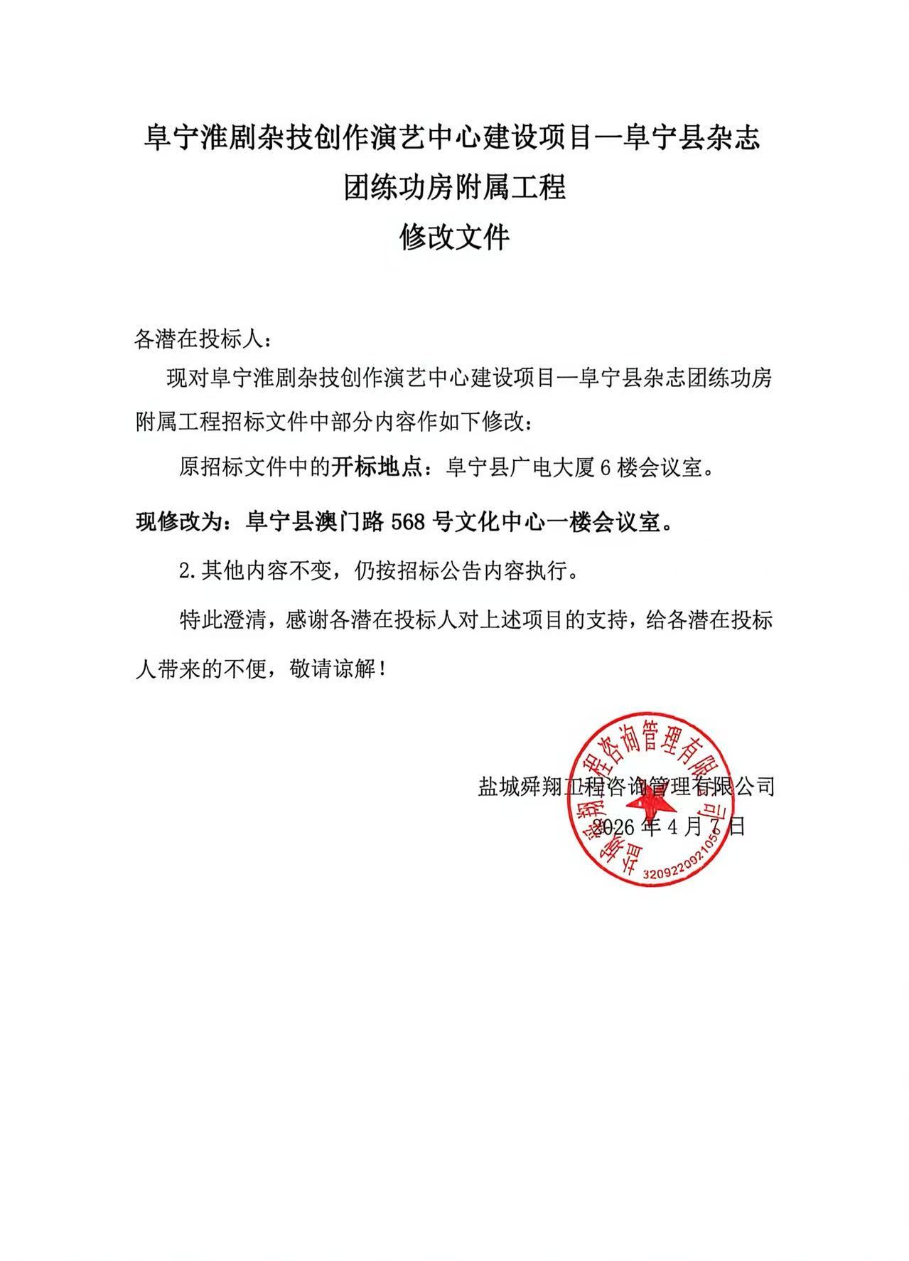 阜宁淮剧杂技创作演艺中心建设项目—阜宁县杂志团练功房附属工程 修改文件