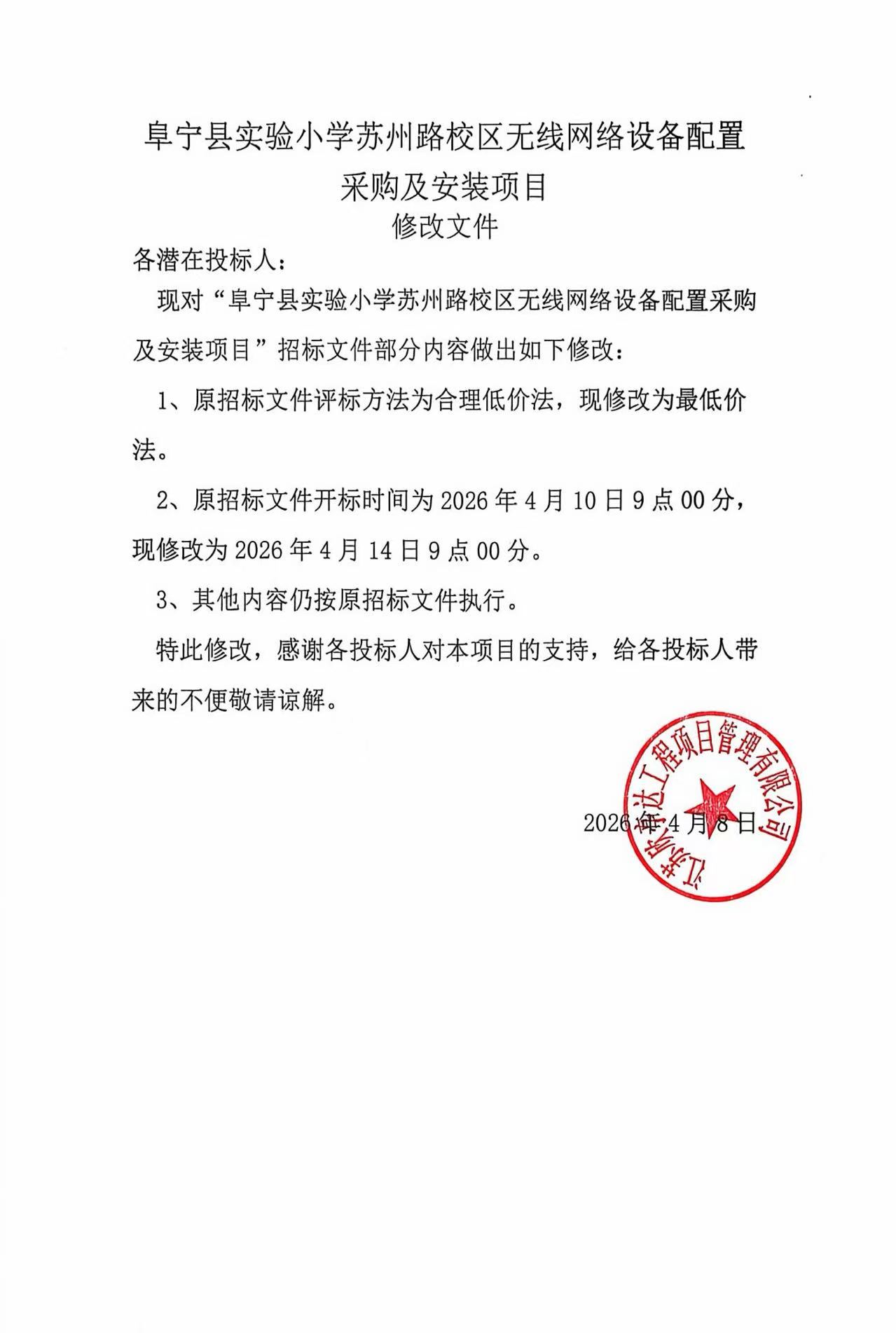阜宁县实验小学苏州路校区无线网络设备配置采购及安装项目修改文件