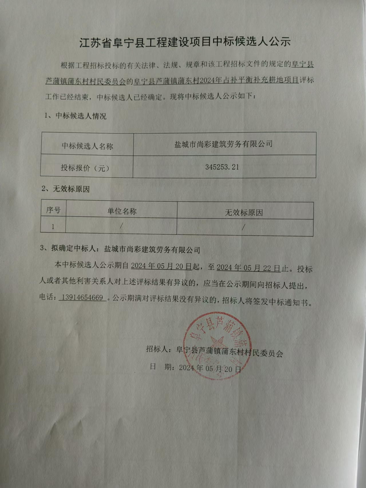 阜宁县芦蒲镇蒲东村2024年占补平衡补充耕地项目
