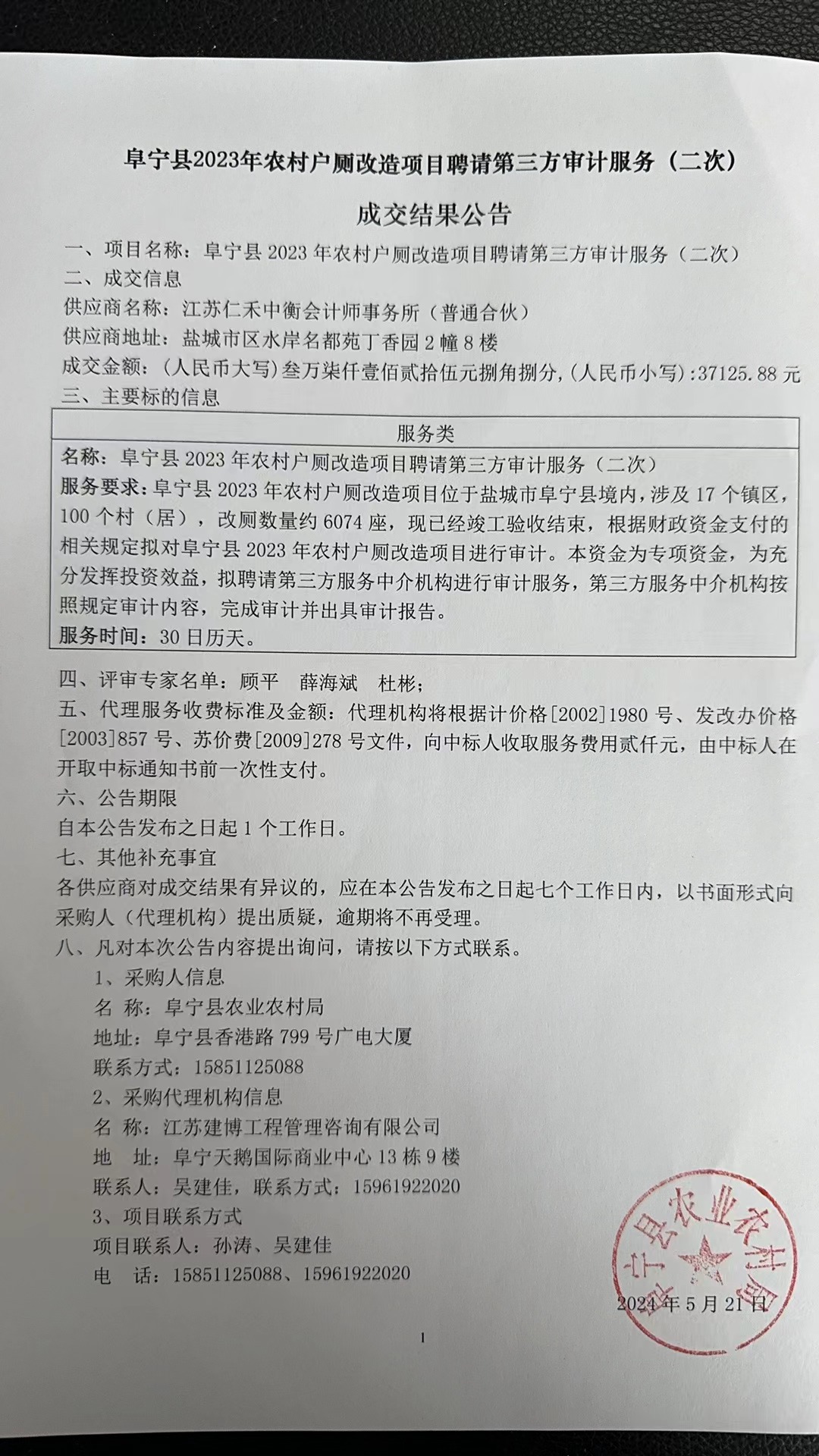 阜宁县2023年农村户厕改造项目聘请第三方审计服务(二次)
