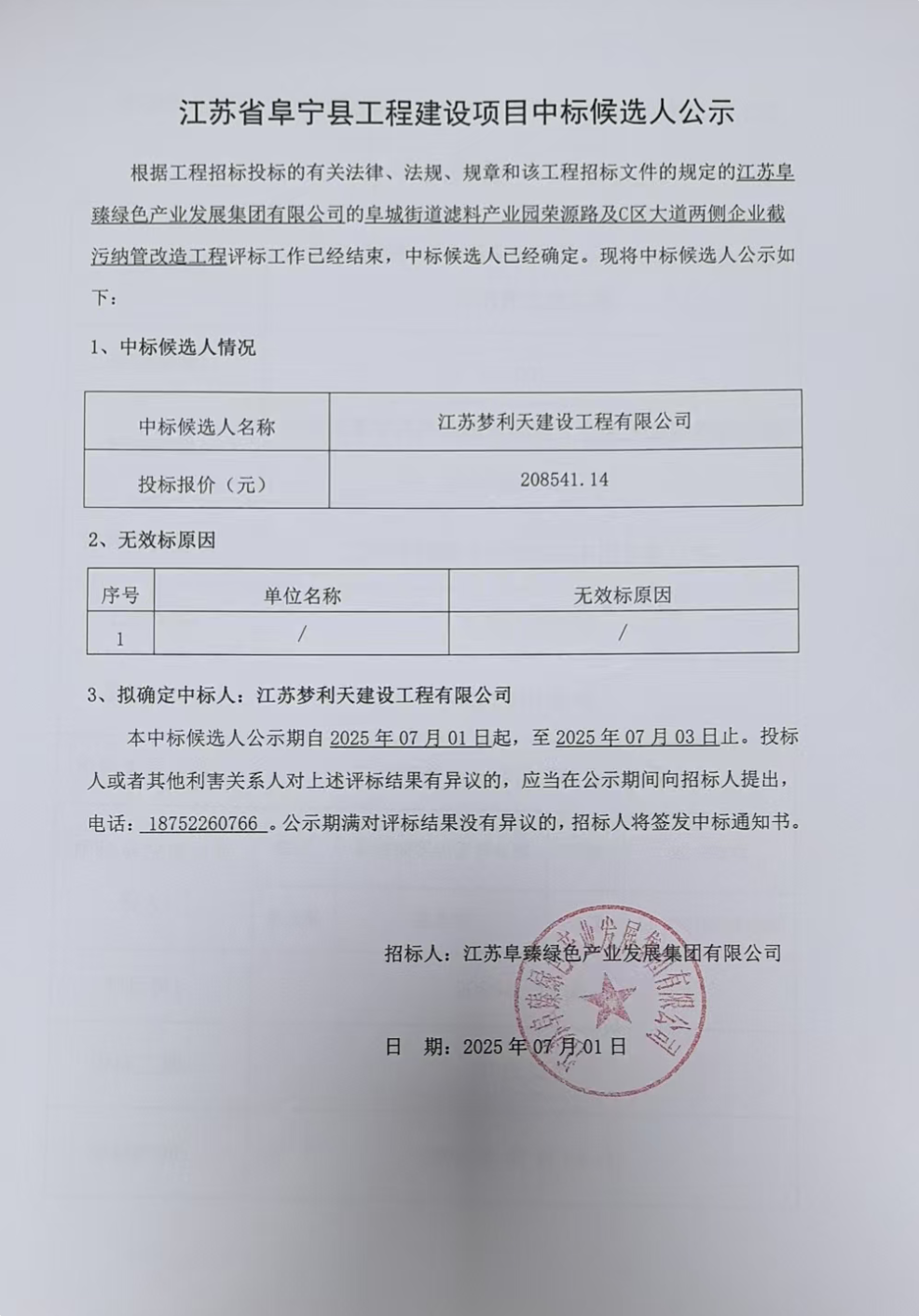 阜城街道滤料产业园荣源路及C区大道两侧企业截污纳管改造工程