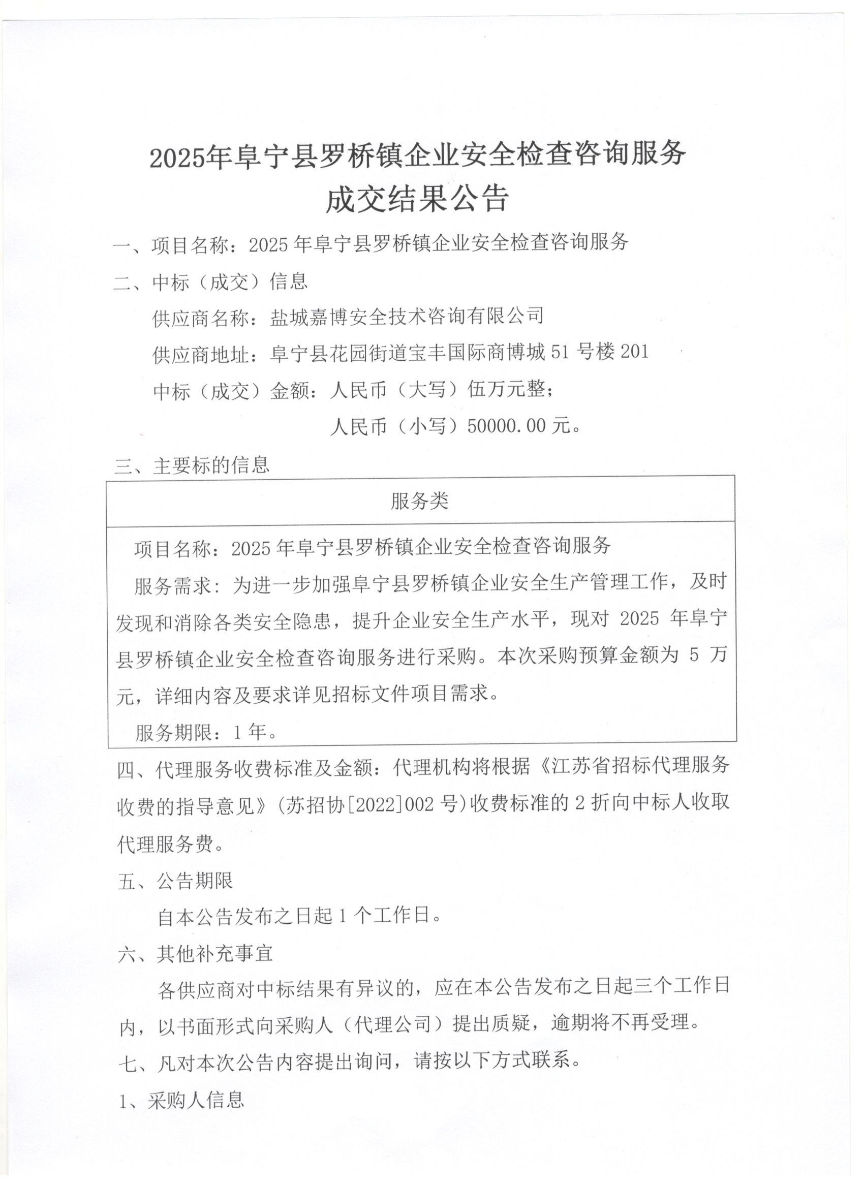 2025年阜宁县罗桥镇企业安全检查咨询服务
