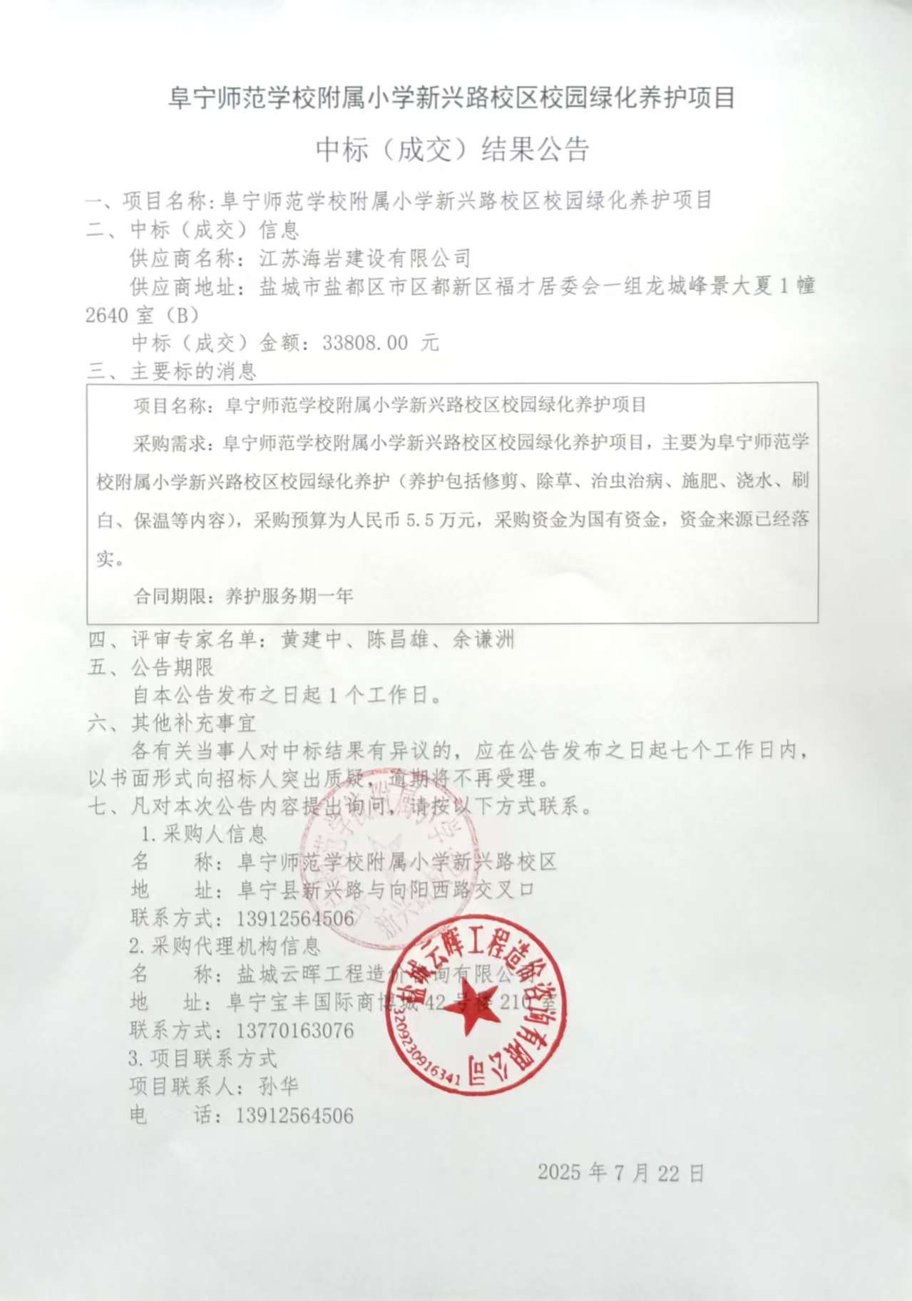 阜宁师范学校附属小学新兴路校区校园绿化养护项目