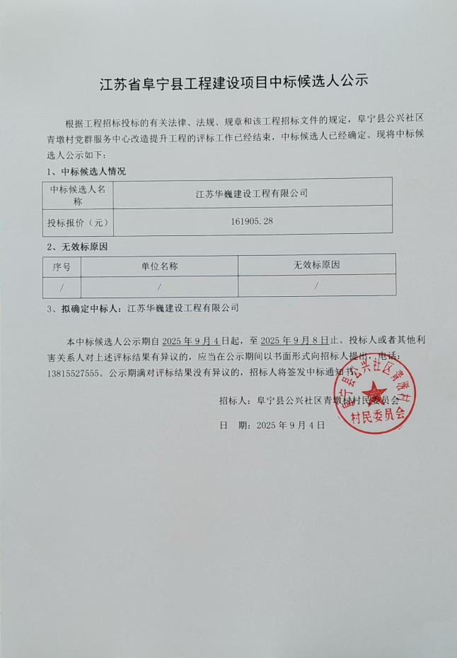 阜宁县公兴社区青墩村党群服务中心改造提升工程