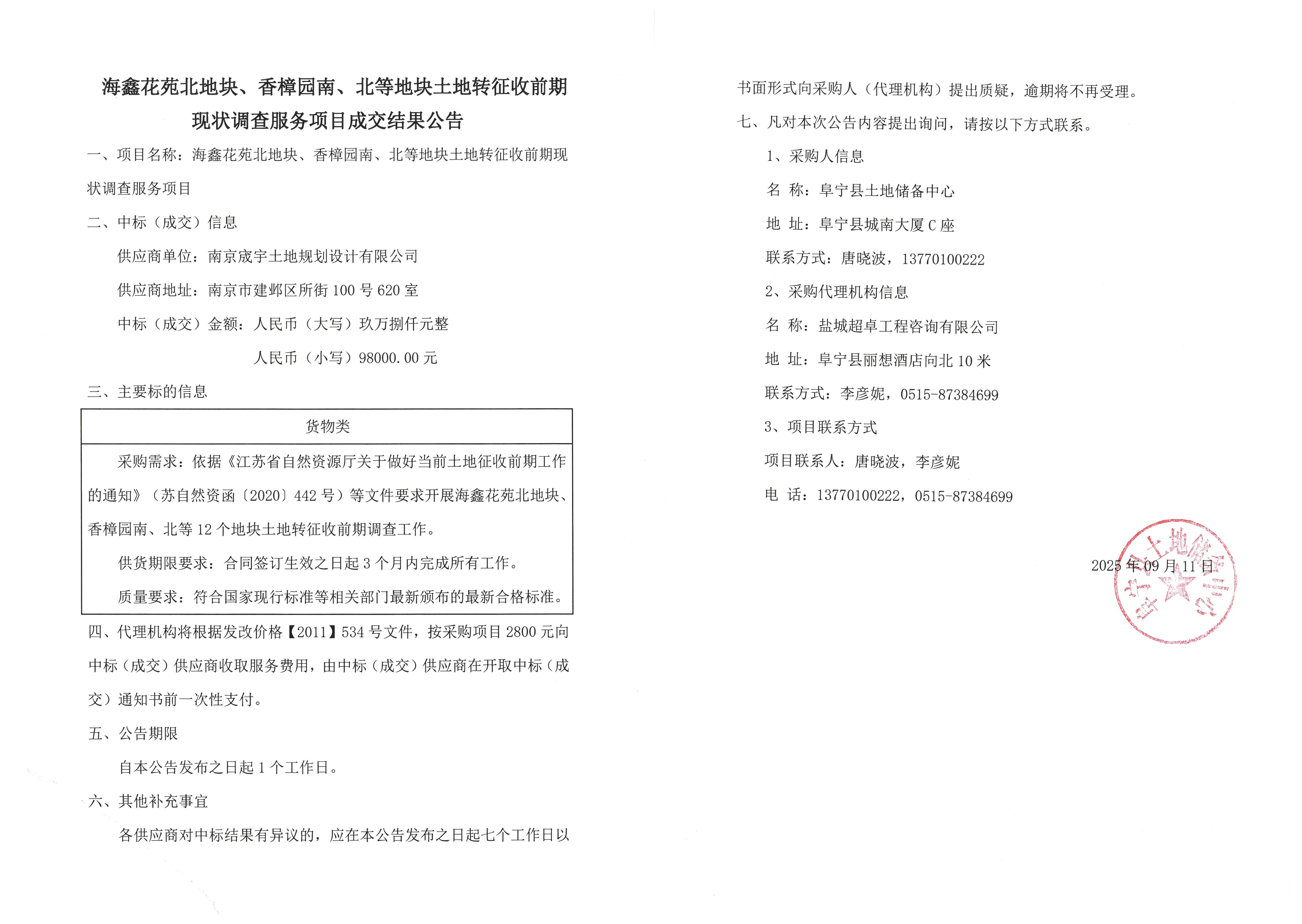 海鑫花苑北地块、香樟园南、北等地块土地转征收前期现状调查服务项目