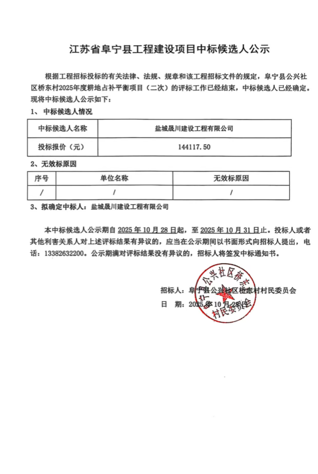 阜宁县公兴社区桥东村2025年度耕地占补平衡项目(二次)