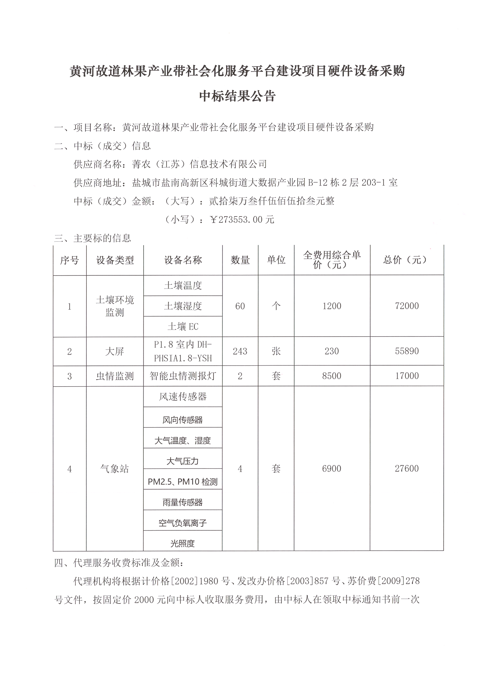 黄河故道林果产业带社会化服务平台建设项目硬件设备采购中标结果公告