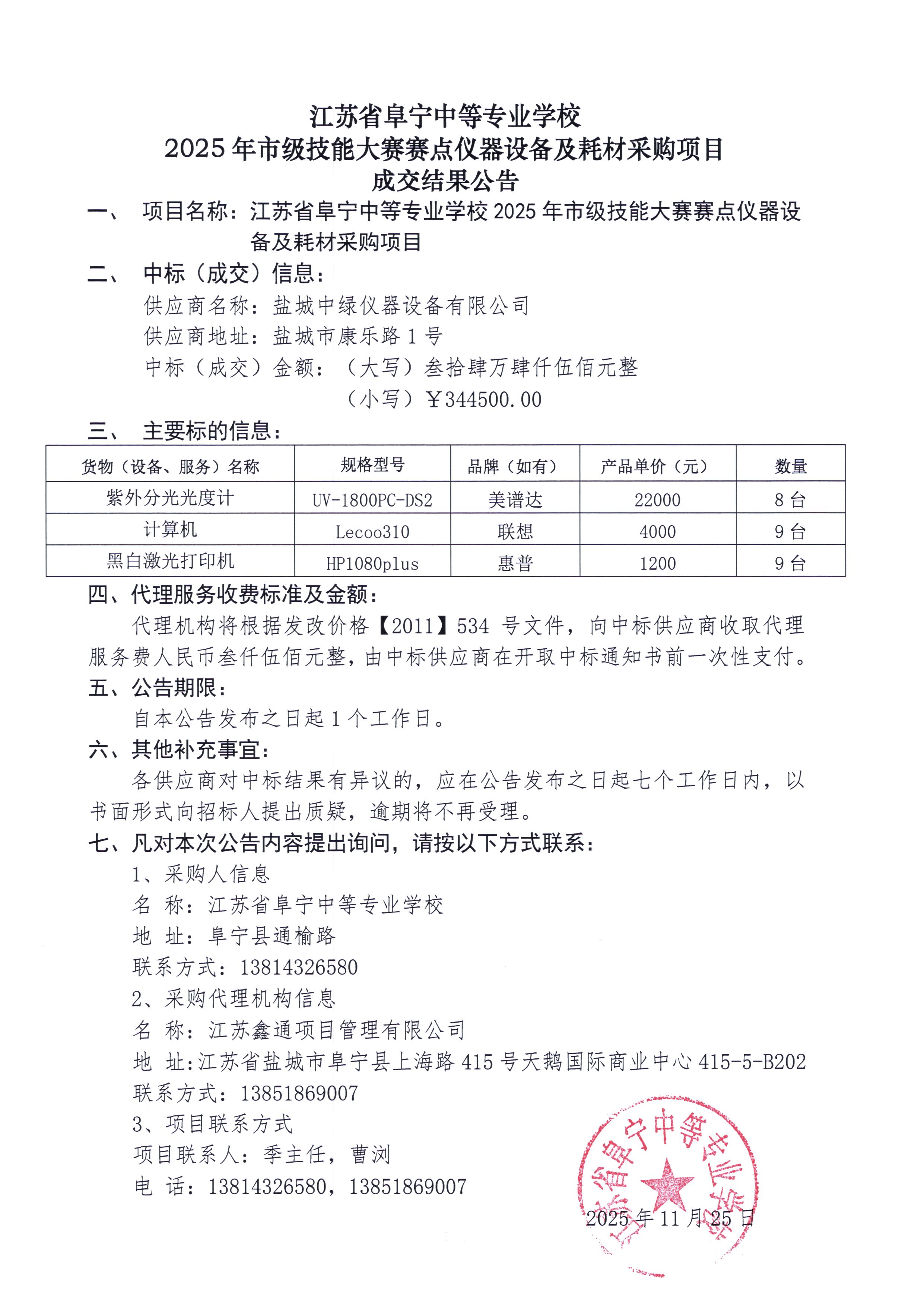 江苏省阜宁中等专业学校2025年市级技能大赛赛点仪器设备及耗材采购项目