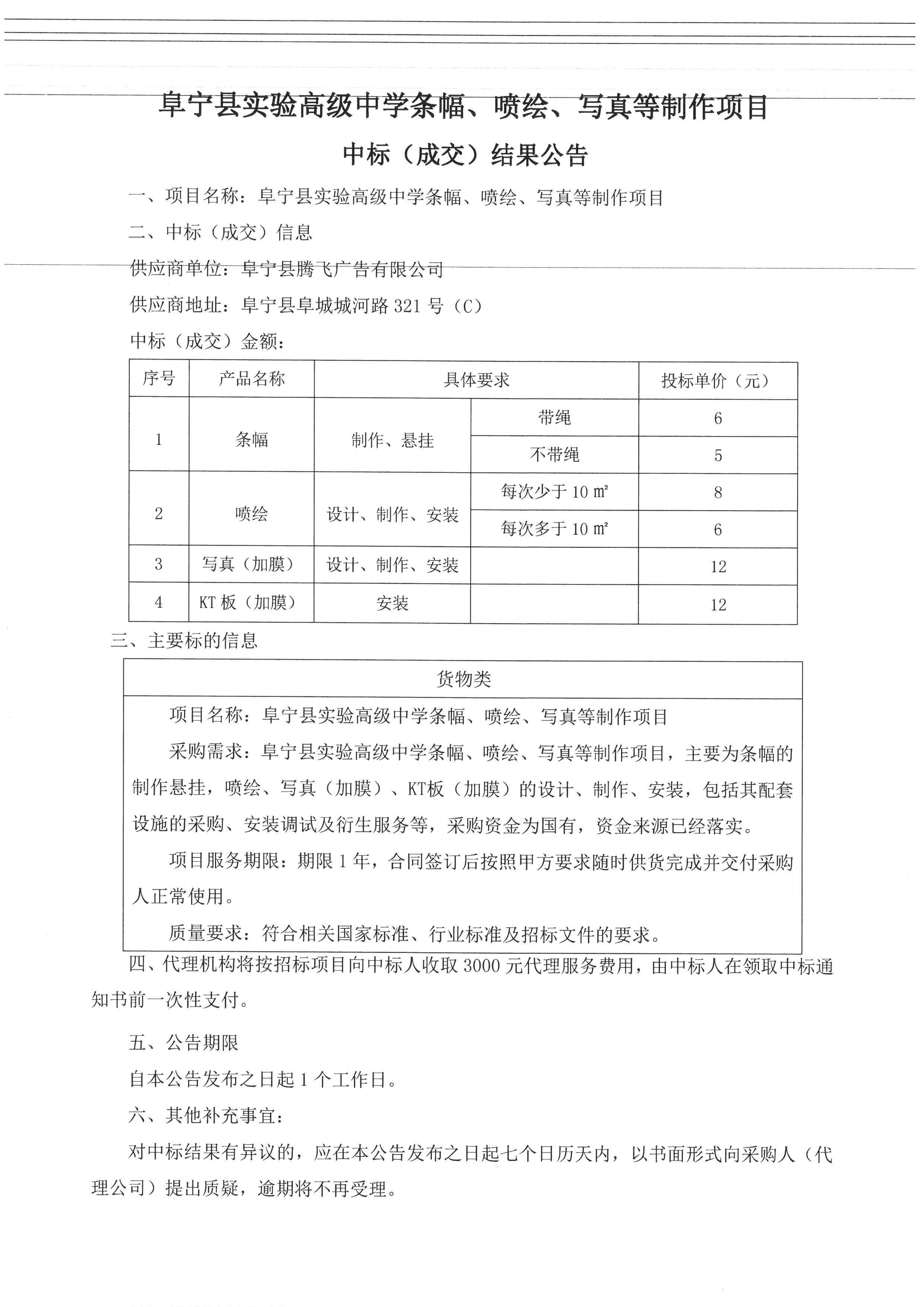 阜宁县实验高级中学条幅、喷绘、写真等制作项目