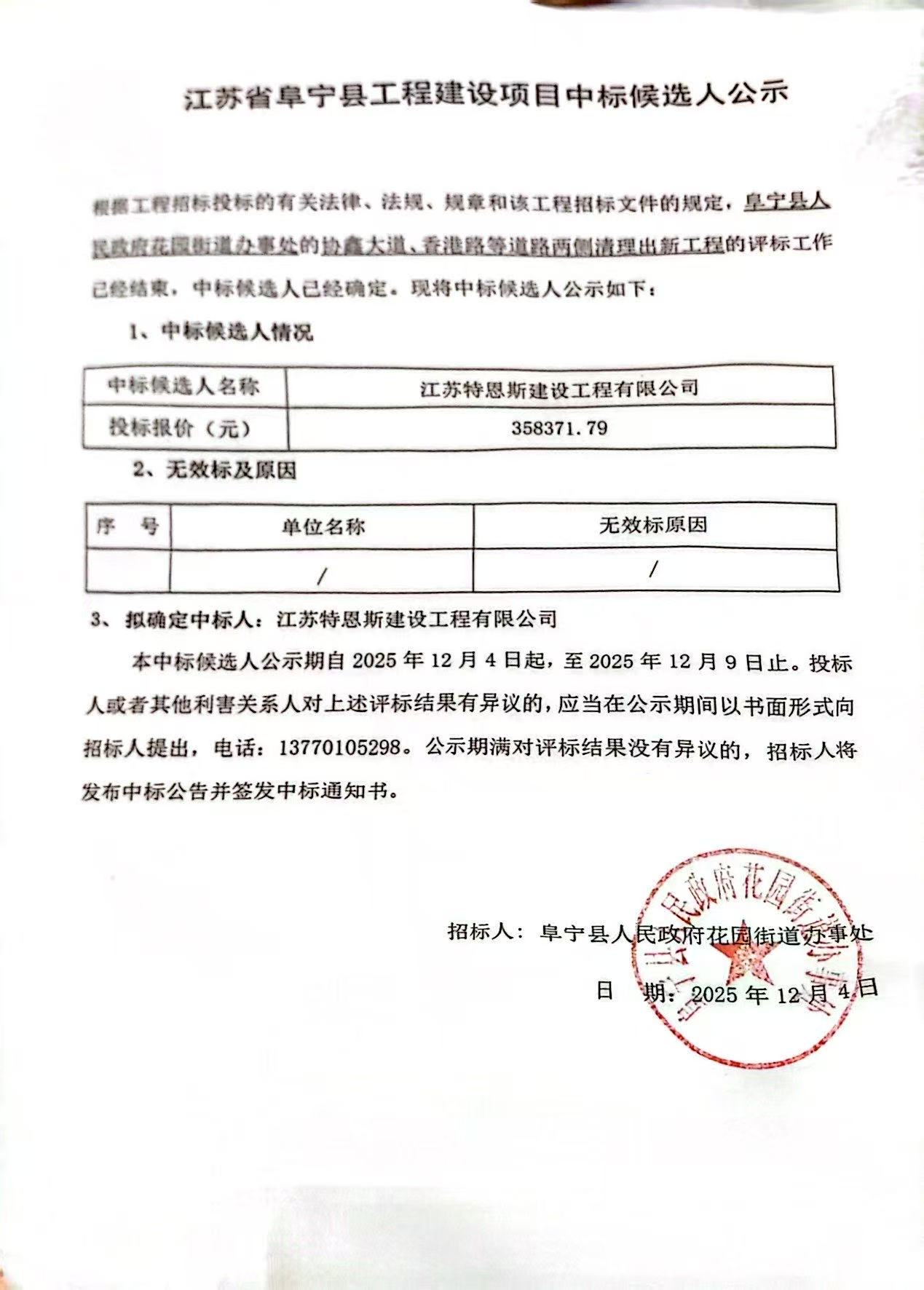 协鑫大道、香港路等道路两侧清理出新工程中标公告